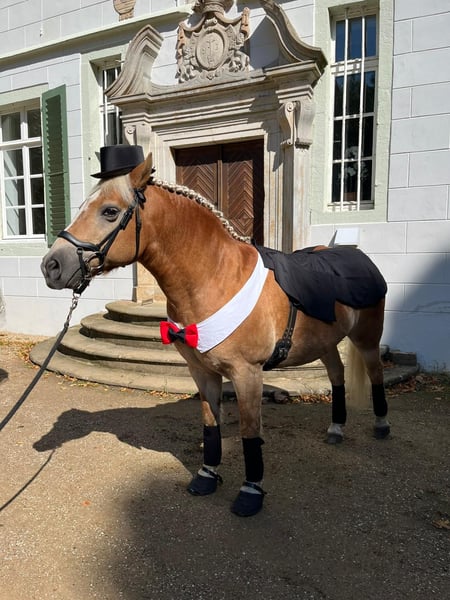 Ich biete hier meinen Haflingerwallch, 20 Jahre an, da ich ihm aus gesundheitlichen Gründen meinerseits nicht gerecht werde. Er ist 145cm größ und vom alten Typ. ER ist total gelassen ob mit Kinder oder Erwachsenen. Auf dem Platz ist er ehr faul aber im Gelände super sicher. Egal ob man über die Kanalbrücke oder unter der Autobahn reitet, ihn stört nichts. Shadow ist auch hier ehr der gemütliche Typ, der sich alles anguckt wenn er was nicht kennt und nicht losrennt. Daher auch als Therapiepferd interessant. Im Gelände trägt er Hufschuhe, die er natürlich auch mitbekommt. Genau wie seine Trense und Outdoordecken. Er kennt es im Offenstall oder nachts in der Box zu wohnen. Er ist absolut Sozialverträglich mit allen Pferden und Menschen. Bis Ende 2024 ist er im Schulbetrieb gelaufen, mit Anfängern und wurde auch bei den kleinsten eingesetzt. Im Januar habe ich ihn übernommen, da der Schulbetrieb aufgelöst wurde. Aufgrund meines handicaps und seiner Breite kann ich ihn doch nicht reiten. Er wurde das ganze Jahr von unterschiedlich starken Reitern bewegt, die alle begeistert von Shadow sind. Da Bewegung sehr wichtig für Ihn ist, da er Spat diagnostiziert hat(Berichte und Röntgenbilder liegen vor) such ich einen entsprechenden Platz für ihn. Ansonsten sind mir keine Krankheiten, wie Rehe oder Allergien bekannt oder aufgefallen. Er hat volles Papier