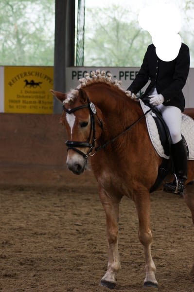 Schweren Herzens suche ich für mein Herzenspferd nach einem neuen Zuhause. Es gibt manchmal Pferde die in ihrem Auftreten etwas ganz besonderes sind und einfach nur positive Eigenschaften mitbringen und genau so ein Pferdchen ist mein Haflingerwallach. Da ich ihm zeitlich einfach nicht mehr gerecht werde, habe ich mich schweren Herzens dazu entschieden diesen Schritt zu gehen und Menschen zu finden, bei denen dieses liebe Pferd nochmal im Mittelpunkt stehen darf. Wichtig ist mir hierbei vor allem, dass die Voraussetzungen stimmen und ich ein gutes Bauchgefühl habe. Er will stets gefallen und es seinen Menschen recht machen. Sowohl im täglichen Umgang als auch beim Reiten ist er immer freundlich und zugewandt. Insbesondere beim Reiten ist er motiviert und freut sich über jegliche Beschäftigung. Er wird noch sehr aktiv geritten, was er völlig unkompliziert mitmacht. Gerade in der Dressur wurde er mal bis zur Klasse L ausgebildet und ist ein ganz toller Lehrmeister. Allerdings hat sich aufgrund seines Alters die tägliche Arbeit mittlerweile in den Freizeitbereich verlagert. Da er absolut artig ist und stets auf seinen Menschen achtet, lässt er sich auch sehr lieb von Kindern reiten (wobei es schön wäre, wenn Kinder über die Longenstunden bereits hinaus sind). Insgesamt ist er ein Pferdchen, das Kindern sehr zugewandt und freundlich gegenüber tritt. Gleichzeitig lässt er sich selbstverständlich auch von leichten Erwachsenen reiten und freut sich gefordert zu werden. Neben der Arbeit auf dem Platz geht er sowohl alleine als auch in der Gruppe ins Gelände und ist auch hier stets seinem Menschen zugewandt. In der Vergangenheit hatte er einmal eine Hufrehe, ist jedoch seitdem völlig beschwerdefrei. Laut Hufschmied und Tierarzt sieht man von der Hufrehe nichts mehr. Dennoch sollte sein neues Zuhause Erfahrung mit dieser Erkrankung mitbringen und auch die Haltungsform sollte entsprechend abgestimmt sein. Mit anderen Wallachen hat er sich in der Regel bisher gut verstanden, bei Stuten kam es sehr auf die gegenseitige Sympathie an. Hinten läuft er barhuf und kommt damit auch sehr gut zurecht. Vorne benötigt er jedoch zwingend seine Eisen. Mir ist es besonders wichtig, dass er in die besten Hände kommt. So kommt eine Abgabe an Reitschulen oder häufig wechselnde Reiter für mich nicht in Frage. Auch würde ich ihn gerne nochmal ab und zu besuchen können. Sollte sich ein solches Zuhause finden, ist der Preis absolut nachrangig. Ich würde mich freuen, wenn sich Menschen finden, bei denen er nochmal Familienmitglied sein darf. Bei ernsthaftem Interesse können selbstverständlich noch weitere Fotos/Videos übersandt werden.