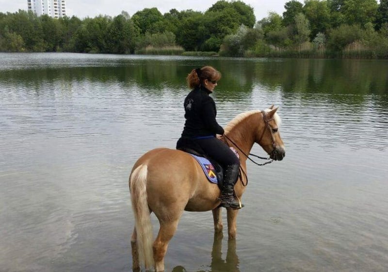 26-jähriges Showpony im Ruhestand sucht Verwöhnpartner fürs Wochenende. Nach 20 Jahren in der Showszene ist Sandy nun im verdienten Ruhestand, aber Ruhe sucht er noch nicht ganz. Deswegen würde er sich über jemanden freuen, der sich mit ihm am Wochenende und gerne auch in den Ferien beschäftigt. Putzen, Reiten, Gelände ist alles noch drin. Aber zur Reitbeteiligung gehört auch Ausmisten, Futter machen und Heu auffüllen, denn die Pferdeerfahrung ist nicht nur Reiten! Ausgebildet ist er im Springen bis L und in der Dressur bis S. Obwohl er ein Haflinger is, ist er kein Anfängerpony. Er ist tiefenentspannt, braucht aber einen erfahrenen Reiter, der alles aus ihm rauskitzelen kann. In unserem Stall gibt es alles - Reithalle, guter Reitplatz, Longierzirkel, Solarium,Laufband und schönes Ausreitgelände. RB ist ab sofort möglich.