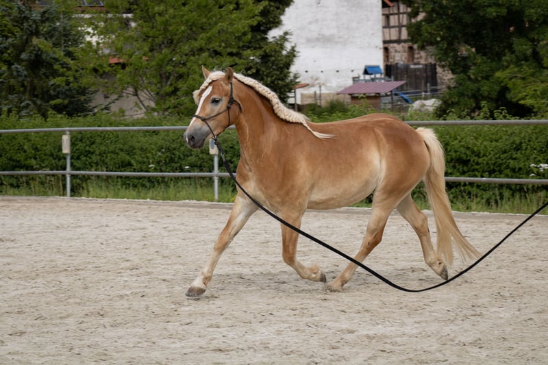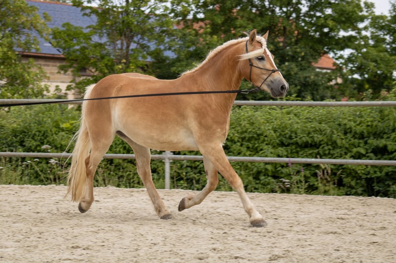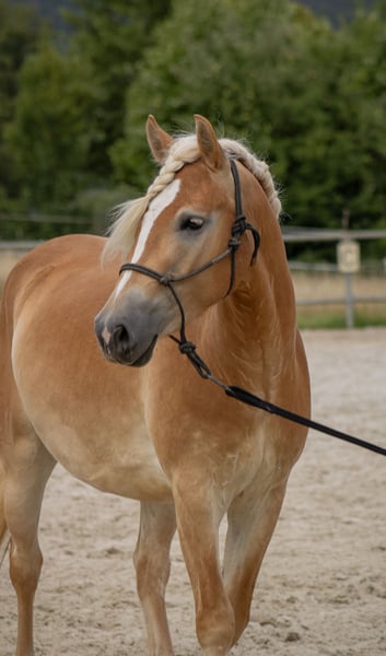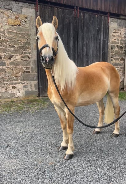 Hongre Edelbluthaflinger de 3 ans avec beaucoup de potentiel à vendre Sirius (*04.2022) Mère : Navinia M, Père : Starino I Taille actuelle : environ 1,40 m Niveau de formation : Sirius a été formé professionnellement en travail au sol et maîtrise cela très bien, de plus, il est déjà longé. Sirius est très gentil en manipulation, il est intrépide, connaît beaucoup de choses et est absolument clair d'esprit, ainsi que ferré et transporté sans problème. Pendant la journée, il se trouve dans un groupe de 5 hongres, la nuit en box. Sirius a été élevé ici et cherche maintenant une personne de référence stable qui l'encourage, le stimule et le forme davantage. Il peut également rester à la ferme. Ce n'est pas une vente urgente - il est vendu uniquement à de bonnes mains ! Pour plus de détails, n'hésitez pas à me contacter personnellement !