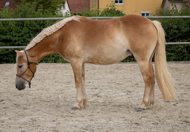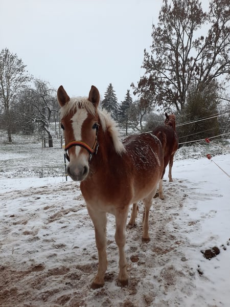 3-jähriger Edelbluthaflinger Wallach mit viel Potential zu verkaufen Sirius (*04.2022) Mutter: Navinia M, Vater: Starino I Stockmaß derzeit ca. 1,40 m Ausbildungsstand: Sirius wurde professionell in der Bodenarbeit ausgebildet und beherrscht dies sehr gut, außerdem ist er anlongiert. Sirius ist sehr brav im Umgang, er ist unerschrocken, kennt viel und ist absolut klar im Kopf, sowie schmiede- und verladefromm. Tagsüber steht er in einer 5er Wallach Gruppe, nachts Boxenhaltung. Sirius war zur Aufzucht hier und sucht nun eine feste Bezugsperson, die ihn fördert, fordert und weiter ausbildet. Er darf gerne auch auf dem Hof bleiben. Dies ist kein Notverkauf - er wird nur in gute Hände verkauft! Näheres gerne persönlich!