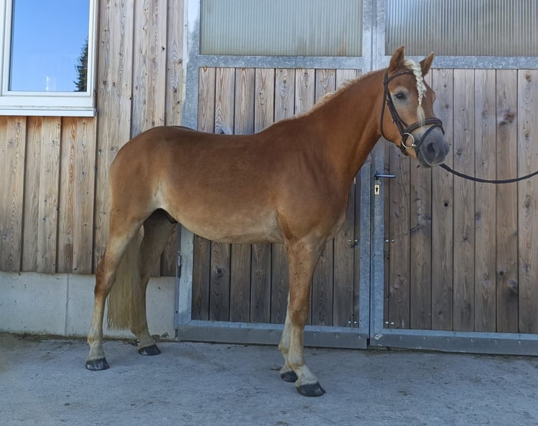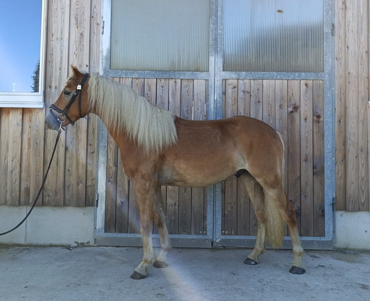 Stiegl, a stunning, large three-and-a-half-year-old Haflinger gelding for sale. Stiegl has been raised in a herd environment and spent his summers on a stallion pasture. He enjoys affection and attention. At the free-running and free-jumping championship, he impressed with his willingness to perform and his sociable nature. He already stands at 154 cm (15.1 hh). He is started under saddle and shows himself to be a great partner with a lot of joy in his work. For inquiries, please contact Josef Fink at +43 664 4293570.
