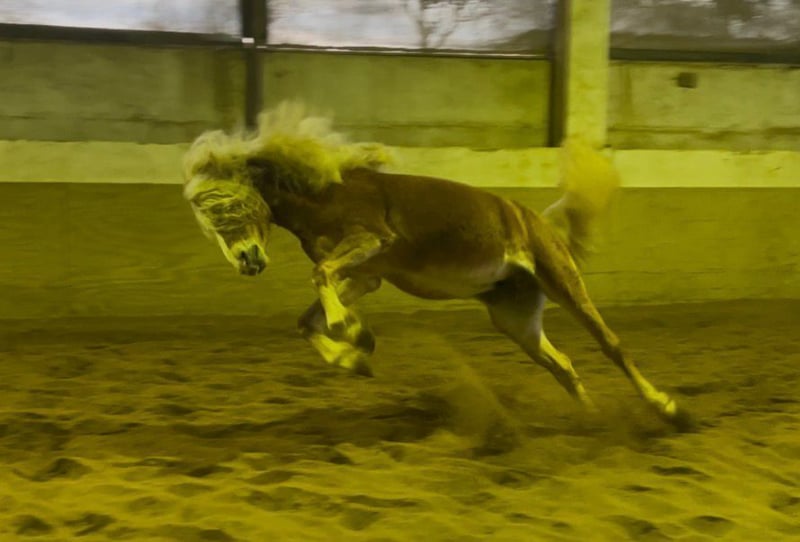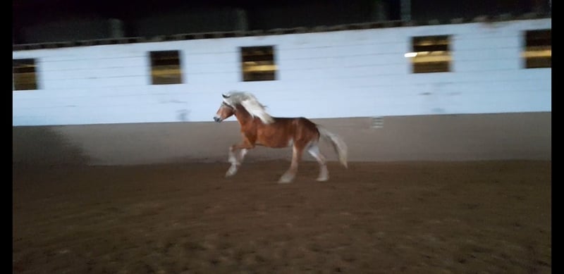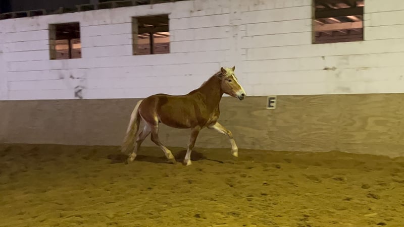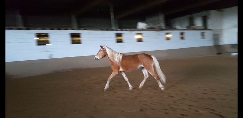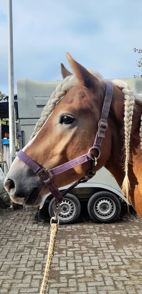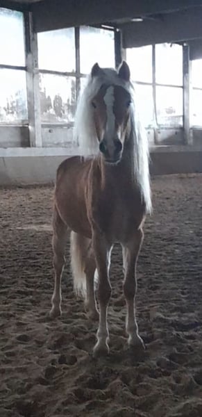 Wolkenstein is a very gentle Haflinger. He does not fit the typical stubborn Haflinger stereotype but is rather a refined type. Sensitive, yet not explosive. He is securely lunged, stands patiently during mounting and dismounting, and has already successfully mastered his first trot steps with a rider. We see him more as a one-owner horse. The direction of his training is entirely up to his new owner: Wolkenstein already possesses all the basic groundwork. He can be visited by appointment after a phone call. He is currently located in Jülich.