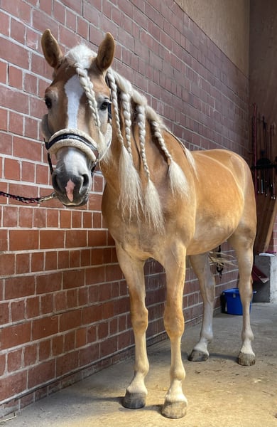 I am offering my 2021-born Haflinger gelding by Sternzauber out of Augartner for sale. He impresses with his three above-average gaits, his attractive appearance, and his height of 1.56 meters. In handling, he is well-behaved and gets along with other horses, although he still has a lot to learn. He is regularly vaccinated, dewormed, and has been introduced to the farrier. Additionally, he loads without any issues. He has not been under saddle for long and has not been worked extensively, at most twice a week, so he is still at the beginning of his training. Therefore, he is only suitable for experienced riders and not for beginners.