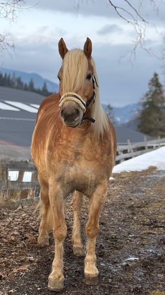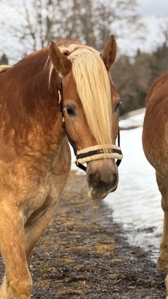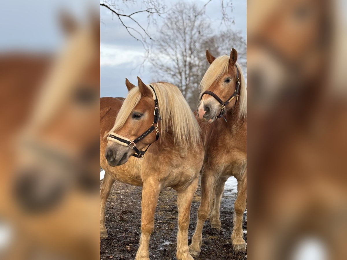 Zum Verkauf stehen zwei ausgesprochen hübsche Haflinger, die nicht nur optisch ein echter Hingucker sind, sondern auch mit ihrem einwandfreien Charakter überzeugen. Die beiden sind mega brav im Umgang, absolut menschenbezogen und zeigen keinerlei Unarten. Waldemar (mit Lederhalfter) geboren 2020 Stockmaß 156cm Vollbruder Western geboren 2019 Stockmaß 153cm Sie sind für den Freizeitbereich geeignet wir können sie uns auch hervorragend als Kutschpferde vorstellen. Wir haben intensiv mit ihnen an der Doppellonge gearbeitet, wodurch sie schon ein bisschen Erfahrung sammeln konnten, dabei zeigen sie sich sehr Vorbildlich und gelassen. Beide sind topfit, arbeitswillig und stets motiviert. Wir können uns die beiden gut vorstellen an einem Gespann. Im täglichen Umgang absolut unkompliziert. Wer zwei charakterstarke, ehrliche und super brave Haflinger für den Fahrsport oder Freizeitbereich sucht, bekommt hier ein tolles Duo mit Herz. Preis: Pro Pferd 5000€