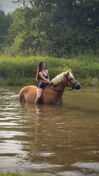 Beautiful 7-year-old Haflinger seeking a loving home for an experienced recreational rider. With a heavy heart, I am looking for a caring home for my 7-year-old Haflinger. He is solidly trained to E/A level and is a motivated leisure partner with a pleasant go. He is sensitive, intelligent, and needs a consistent handler. He can be a bit testing when uncertain, but with calm, clear leadership, he shows himself attentive and eager to learn. Once he has built trust, he will do anything for his person. In the terrain, he is not a natural trail horse and prefers an experienced rider. However, on the arena, he truly shines – he loves small jumps more than anything, learns new tasks quickly, and enjoys free riding and lunging with a halter. He is farrier- and loading-trusted. In daily handling, he is always fearless and resilient. A minor toe misalignment is present but currently does not limit him. No other health issues are known. I wish for him a horse-friendly home in the leisure sector, not for pure sport, but with people seeking a genuine partnership. Only to the best hands.