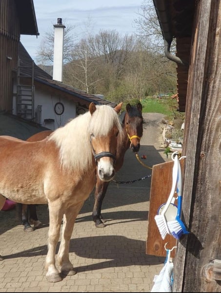 Hallo zusammen! Ich stelle meinen Haflingerwallach (7 jährig) einer geeigneten Person als Pflege- oder Reitpferd „ wie ein eigenes Pferd“ zur Verfügung. Wir wohnen momentan in Österreich und mein Pferd steht auf dem elterlichen Hof mit einem anderen Pferd zusammen. Mit ihm wurde und wird momentan viel Boden- und Freiarbeit gemacht und er wird Schritt für Schritt zu einem verlässlichen Reitpferd. Zu Beginn sollte aber die Beziehungsarbeit im Vordergrund stehen und dass ihr als Team gut zusammenwachst, damit ihr dann sicher ins Gelände gehen könnt. Du solltest Freude und Interesse daran haben mit einem jungen und wissbegierigem Pferd zusammenzuarbeiten. Er ist ein sehr lernfreudiges, aufgewecktes und mutiges Pferd, mit welchem man viel Spaß auch im Gelände hat. Er ist trittfest und geht gerne ins Wasser. Ich suche jemanden, der Wert auf ganzheitliche Ausbildung legt und gerne für und mit dem Pferd lernt! Er reagiert sehr fein auf Körpersprache und Stimme und macht in der Freiarbeit lieb und gerne mit. Loki ist manchmal ein typischer Haflinger und weiß was er will und wenn man nicht konsequent mit ihm ist, nutzt er das aus. Man muss bei ihm klar, verständlich und verständnisvoll bleiben. Daher bitte nur Anfragen, wenn ihr 18+ seid und Erfahrungen mit (jungen) Pferden habt. Wenn es mit euch beiden passt, kann er wie dein eigenes Pferd verwendet werden - auch Kurse und Ausflüge sind denkbar! Deine Tage sind absolut frei wählbar, auch die Anzahl, mindestens aber 3x die Woche. Er steht momentan in Rudersberg-Oberndorf (73635), die Anlage vom Burghöfle kann mitbenutzt werden. Ich freue mich über eine Nachricht mit deinen Erfahrungen und Arbeitsweise (telefonisch unter 0178 2878994 erreichbar)! Viele Grüße, Sieglinde