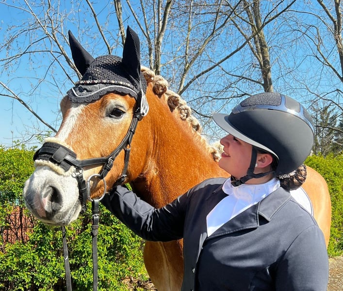 A Hearthorse Searching for Its Person Haflinger gelding | 2018 | approx. 15.0 hh | Chestnut Sometimes you come across horses that are more than just riding partners. Horses that look at you and you can sense there’s real character inside. We have such a horse, and as difficult as it is for us to part with him, he is now looking for a new home. Aperol is a horse with a strong personality, a fantastic presence, and plenty of temperament. He is not a horse you can just let run alongside. He needs someone who sees him, thinks with him, and challenges and supports him. Someone who channels his energy into work and loves his sensitivity instead of fearing it. When given the right environment, he opens up and impresses with beautiful basic gaits, expression, intelligence, and willingness to learn. He is definitely not suitable for beginners or children’s ponies! He requires a rider who can handle some bucking and has the courage to continue riding rather than stopping. He needs a partner with understanding and riding skills. - Sensitive, intelligent, and full of zest for life - Wants to please when treated fairly and clearly - Grows with challenges - Builds a bond with his person; if the environment is right, he will be loyal and become a fantastic sport partner He has asthma and sweet itch, which we openly share because honesty connects horses with the right owners, and we only want the best for him! In summer, he needs a box with paddock because of his sweet itch, as he cannot be turned out. He requires steamed hay, dust-free bedding, and a stable where neighboring horses are kept similarly, and the aisle is not swept when the horses are inside. In winter, he needs the same steamed hay, dust-free bedding, and a stable with similar conditions. It’s also possible to keep him in a loose box during winter, but without turnout and with steamed hay and suitable bedding. This keeps him stable, unobtrusive, content, and ready to show his potential. He needs structure, understanding, care, and someone who provides him with this framework. For someone who not only rides but is also willing to invest in the relationship from the ground up. A horse that challenges you but also touches your heart. If he finds a place in your heart, he could be the perfect match for you. Would you like to meet him? Please feel free to call me—ask questions, and I’ll gladly tell you everything else in detail. We are looking for the perfect home for him. We have no urgent need to sell; the right person just needs to come along. Riding schools and dealers, please refrain! We don’t want to just sell him; we want to find someone for whom this horse truly means a home. Maybe you’ve already been waiting for each other. 🧡🐴 Price mentioned only because it has to be—here, space comes before price!