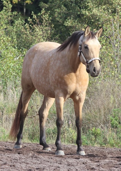 This very lovely 8-year-old part-bred mare in a beautiful color is for sale. She is currently being ridden and will surely become a very reliable leisure horse. She has excellent, smooth gaits, making her very comfortable to sit. Anyone looking for a great Western-ridden leisure horse should definitely take a look at this mare. Price will increase with further training.