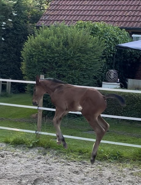 For sale is an extraordinary, large-framed Hanoverian colt of modern type, outstanding movement ability, and an excellent character. A true stallion candidate with high development potential for sport and breeding! Pedigree: Escanto PS x Dimaggio Sire: Escanto PS The Escamillo son Escanto PS impresses with his dynamism, light-footedness, and modern conformation. He is owned by Paul Schockemöhle and is considered one of the most promising young stallions of his generation. ➡️ Grandfather Escamillo was Vice World Champion of young dressage horses and is now successful at Grand Prix level. ➡️ Through Escolar, the proven performance blood of the Westphalian dressage elite flows into his lineage. Dam line (born and raised by Suzanne Davis in England) through Dimaggio – a legend in dressage horse breeding. Dimaggio, himself a World Champion of young dressage horses, has had a lasting impact on breeding through rideability, elegance, and movement quality. ➡️ He is the sire of numerous Grand Prix horses and licensed stallions, including Desperado FRH, Dimaggio Black, and Don Noble. ➡️ The maternal line not only brings performance but also the best character – this foal is attentive, friendly, and uncomplicated to handle. ⭐ Special features: • Large-framed, modern & type strong • Swinging, rhythmic movements • Excellent character – balanced, people-oriented • High-quality genetics for breeding & sport • Correct foundation – stallion candidate with perspective We are happy to send photos and videos upon serious interest. Location: 26506 Norden Please feel free to contact us for more information or to arrange a viewing appointment. An extraordinary colt for connoisseurs and supporters of dressage horse breeding!