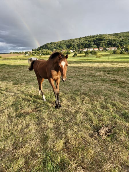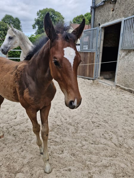 **Folle di stallone Hannoverano, premiato con oro e 6° al Campionato tedesco dei puledri a Lienen!** In vendita c'è un promettente puledro stallone Hannoverano di Esmeraldo x Rebell Junior x Landor S. Eddie the Eagle è nato il 19.05.2025. È un puledro molto tipico e coraggioso. Questo vivace giovane atleta è diventato il vincitore assoluto dei puledri orientati al salto nella mostra dei puledri, ricevendo il premio d'oro. Ha vinto la qualificazione per il Campionato tedesco dei puledri. Così si è qualificato per Lienen. Nella finale a Lienen è arrivato 6°. Punteggi di tipo fino a 9,5! Sua madre è stata anch'essa, nel salto, di successo fino alla classe M. Per ulteriori informazioni o per manifestare interesse, sono a vostra disposizione. Le visite sono possibili su appuntamento. Disponibile in autunno, dopo lo svezzamento!