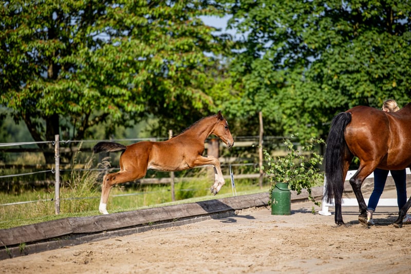 **Hannoverian Colt Foal, Gold Premium and 6th at the German Foal Championship in Lienen!** For sale is a promising Hannoverian colt foal by Esmeraldo x Rebell Junior x Landor S. Eddie the Eagle was born on May 19, 2025. He is a very typy and courageous foal. This spirited young athlete became the overall winner of the show-jumping focused foals at the foal inspection, where he was awarded the Gold Premium. He won the qualification for the German Foal Championship, thus qualifying for Lienen. In the final in Lienen, he placed 6th. Type scores up to 9.5! His mother has been successful in show jumping up to class M herself. If you are interested or need further information, please feel free to contact me. Viewings are possible by appointment. Available in autumn, after weaning!