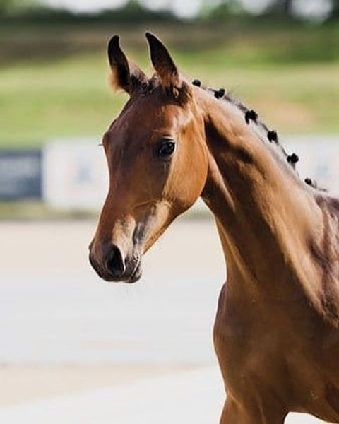 Modern colt – athletic, expressive, and with the conformation of a top modern show jumper. This outstanding foal is among the best of the Bonhomme Foal Championship and received top scores for type (9.0), conformation, and overall impression (each 8.5). He exudes charisma, has a correct build, and a very good, balanced canter. His friendly, alert, and attentive nature is especially noteworthy! Thanks to his gentle temperament and exceptional jumping pedigree, he is well-suited for both ambitious amateurs and professionals. The foal is regularly handled, familiar with basic foal training, and in excellent health. He is regularly trimmed, dewormed, chipped, and has a clean bill of health. Born and raised in loving, attentive private breeding. We look forward to your interest and are happy to show you the foal in person! Feel free to contact us via WhatsApp: +49 176 55323449. His sire, the impressive 1.60 m jumping winner Zinedream, is among the top competitors at major international events with David Will. He has achieved numerous wins and placings in the Global Champions League, World Cup stages, Nations Cups, Grand Prix, and many other international competitions. Zinedream is not only a top athlete but also a first-class breeding stallion – his progeny include high-placed young horses, competition winners, and premium stallions. We are convinced that his outstanding jumping ability, scope, rideability, and caution will also be passed on to this foal. The dam is a direct daughter of the valuable Stolzenberg, Hannoveraner Stallion of the Year 2019, who counts over 60 successful offspring in the 1.40 m and higher classes, making him one of Hannover’s most influential jumping sires. Through Graf Top and Gardeulan, she brings proven G-bloodlines and additional world-class genetics into her pedigree. Among her successful relatives in the direct line is Congrato, who has placed in FEI 2* show jumping. The pedigree is based on the highly successful and double-licensed Hannoveraner Stamm Justaza. Hannoveraner mare line Justaza: Licensed stallions: Calayo (by Charming Irco), Dragahn (by Diavolo), Golan (by Gottschalk), Lacatto RK (by Lethago Z, 1.30 m jumping), Lukrativ (by Lukas), Wenckstern (by Weltmeyer, Dressage Grand Prix). Sport horses: A Quite (by Quidam’s Rubin, 1.60 m jumping), Arack (by Absatz, 1.10 m jumping, L*-dressage, 0.90 m eventing), A. Mira Liwe (by Liwe Star, 1.40 m jumping), Benetton 40 (by Blue Hors Bentley, 1.00 m jumping, L*-dressage), Carisma II (by Contendro I, 1.40 m jumping), Catch Me RK (by DSP Cashmoaker, 1.35 m jumping), Congrato (by Contendro I, 1.45 m jumping), Contendro KA (by Contendro I, 1.35 m jumping), Crystel Clear (by Calido I, 1.45 m jumping), Dakar (by Don Bosco, M*-dressage), Debussy (by Dimaggio, PSG/Inter I), Don Giovanni (by Drosselklang II, 1.20 m jumping), Dora Di Louisa (by Der Designer, S-dressage), Dracina (by Drosselklang II, 1.30 m jumping), Espen Escalidog (by Exorbitant xx, L**-dressage), Esquinza (by Ehrentusch, 1.30 m jumping), H4H Ghalliya (by Tango, PSG/Inter I), Hannigan L (by Herzensdieb, PSG/Inter I), Heart To Heart (by Heartbeat, 1.35 m jumping), Huracan (by Blue Hors Hotline, PSG/Inter I), Libero 118 (by Likoto xx, M**-dressage), Locana (by Cola, 1.35 m jumping), Lucy (by Lanthan, 1.10 m jumping, A-dressage), Nurmi 21 (by Novum xx, 1.35 m jumping, L*-dressage), Quintor (by Quintender, 1.35 m jumping), Pramwaldhof’s Bayala (by Barroso, dressage Grand Prix), Severis Jody (by Johnson, PSG/Inter I), Valencia 86 (by Valentino, M*-dressage), Valentina 81 (by Valentino, 1.35 m jumping), Washington 110 (by Walt Disney I, M*-dressage), Weltwirbel (by Weltmeyer, M*-dressage), Wembley (by Weltmeyer, PSG/Inter I), Wild Willy Granly (by De Noir 3, PSG/Inter I), Wolverine 2 (by Weltmeyer, PSG/Inter I).