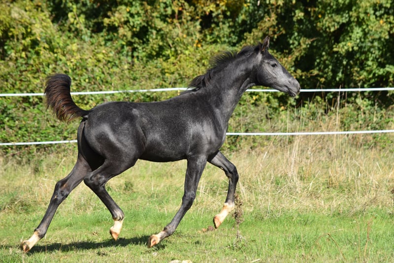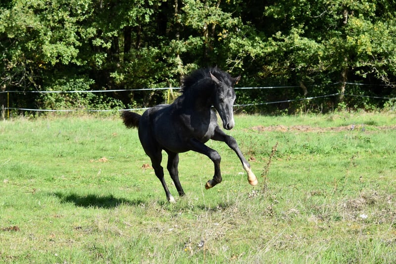 🌙 Silvermoon d’Eden🌙 Sky x Dancier x Warkant Mâle Hanovrien gris (base noire) Né le 13 mai 2025 Cherche sa famille 5💫 Je suis archi fan de ce poulain très chic, qui, en plus d’avoir trois très bonnes allures que vous pouvez voir sur cette vidéo 😁 Est super adorable, curieux, proche de l’Homme et serein au quotidien. Ne gardant pas de mâles à l’élevage, il est à la recherche de sa future maison 5⭐️ Qu’il pourra rejoindre au sevrage ! (Si il était une fille, je peux vous assurer qu’il resterait à la maison 😍) Son père, Sky, est par le triple champion du monde Sezuan et une mère par Sir Donnerhall, qu’on ne présente plus. Sky vient de remporter le championnat allemand des 7 ans avec la très belle moyenne de 89,6 pour ses qualités d’allures et de 77,27 pour la technique ! Sky a été nommé étalon premium lors de son approbation au Hanovre, dont il a été le top price à 480 000 euros. Lors des testages, il obtient notamment 9,75 pour sa facilité sous la selle. Sa mère est une jument de 5 ans par Dancier x Warkant. Son demi-frère par Blue Hors Viconte a été top price en ventes aux enchères foals en 2021 et vendu 46 000 euros. Snowy est une adorable jument qui a trois très bonnes allures avec de très bons postérieurs et de la souplesse. Vous pouvez venir le rencontrer à notre élevage, près de Poitiers. N’hésitez pas à me contacter pour plus d’informations ! 10 000 euros HT (negociable avant sevrage)