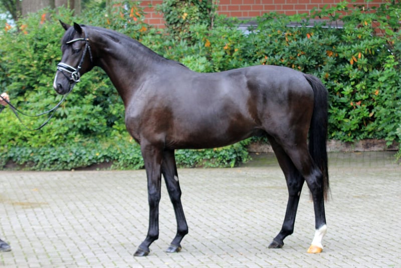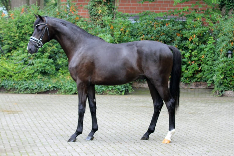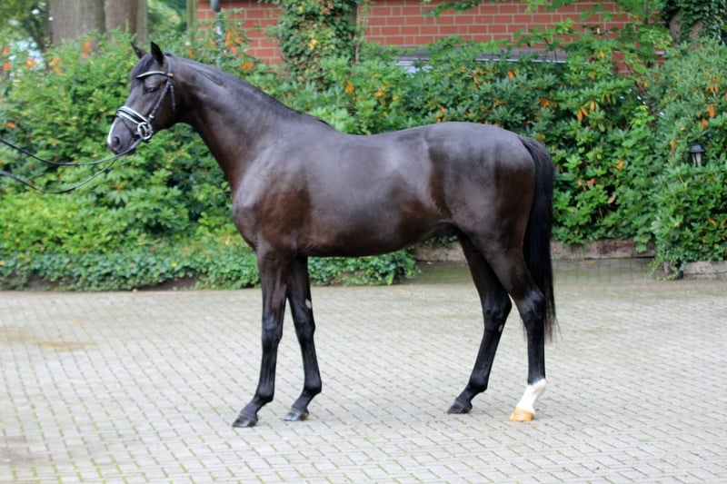 Jet black gem from a loving breeding home. He is sired by Glock's Energy - Secret - Wolkenstein II. This maternal line has been cultivated for generations in his breeding establishment. Still in the early stages of training, he is completing his first training sessions with flying colors. He shows a willingness to learn with a fantastic attitude. Father Glock's Energy was an outstanding premium stallion at the Hanoverian Stallion Licensing 2021. The handsome black stallion by Escamillo x De Niro x Prince Thatch xx is equipped with expansive movements and a lot of knee action, moving with great elasticity and dynamism through his body. He boasts no less than six Grand Prix ancestors in the first three generations of his pedigree. The maternal grandfather Secret is already considered an exceptional horse with an unprecedented breeding record. At the World Championship for Young Dressage Horses in Ermelo 2024, Secret alone has 15 participants, including 10 in the ranking of the six-year-olds. Among them are the vice-champion of the four-year-olds, the bronze medal winner of the five-year-olds, and the vice-world champion of the six-year-old dressage horses. At the simultaneously held Bundeschampionat, another 25 descendants of Secret competed, including numerous finalists and the vice-bundeschampion of the four-year-old mares and geldings. According to FN, the number of licensed and recognized sons has risen to 55, including numerous premium stallions and celebrated prize winners. On behalf. Video available upon request.