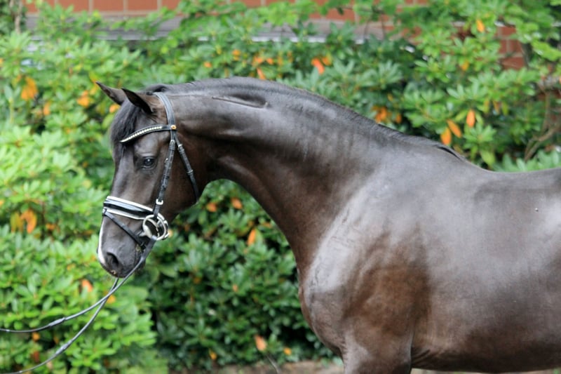 Lackschwarzer Edelstein aus liebevollem Züchterhause. Er stammt ab von Glocks Energy - Secret - Wolkenstein II. Diese Mutterlinie wird seit Generationen in seinem Züchterhause gepflegt. Noch in den Kinderschuhen der Ausbildung absolviert er seine ersten Trainingseinheiten mit Bravour. Er zeigt sich lernwillig mit ganzer toller Einstellung. Vater Glock`s Energy war herausragender Prämienhengst der Hannoveraner Hengstkörung 2021. Der schicke Rappe von Escamillo x De Niro x Prince Thatch xx ist bei raumgreifenden Bewegungen mit viel Knieaktion ausgestattet und bewegt sich mit viel Elastizität schwungvoll durch den Körper. Er verweist in den ersten drei Generationen seines Pedigrees nicht weniger als sechs Grand-Prix-Vorfahren. Auch Muttervater Secret gilt bereits jetzt als ein Ausnahmepferd mit noch nie dagewesener Vererbungsbilanz. Alleine auf der Weltmeisterschaft der jungen Dressurpferde in Ermelo 2024 stellt Secret 15 Teilnehmer, allein 10 davon im Klassement der sechsjährigen Pferde. Darunter den Vize-Champion der vierjährigen, den Gewinner der Bronzemedaille der fünfjährigen und die Vize-Weltmeisterin der sechsjährigen Dressurpferde. Auf dem zeitgleich stattfindenden Bundeschampionat gingen weitere 25 Nachkommen von Secret an den Start, darunter zahlreiche Finalteilnehmer und der Vizebundechampion der vierjährigen Stuten und Wallache. Die Zahl der gekörten und anerkannten Söhne ist laut FN auf 55 angestiegen darunter zahlreiche Prämienhengste und gefeierte Preisspitzen. Im Auftrag. Video auf Anfrage.