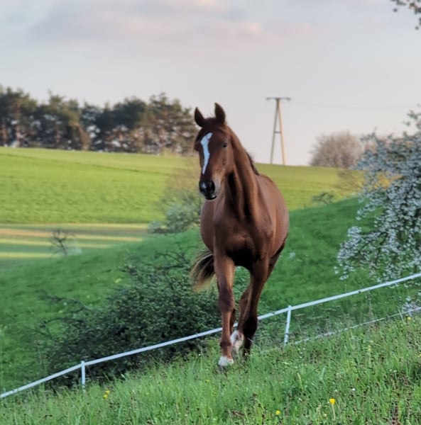Charakter, Adel und Sportlerherz Zum Verkauf steht der 20 Monate alte Hannoveraner-Hengst Escario (geb. 07.07.2024). Ein Youngster mit Format, der durch seine enorme Ausdrucksstärke und sein sportliches Temperament besticht. Was Escario ausmacht: Escario ist kein Pferd für jedermann – er ist eine hochsensible, feurige Persönlichkeit. Er ist keine „Schlaftablette“, sondern ein echtes Sportlerherz mit einer schnellen Auffassungsgabe und dem nötigen „Go“. Wer ein Pferd mit einer feinen Kommunikation sucht und das Besondere zu schätzen weiß, findet hier einen hochinteressanten Rohdiamanten. Er ist absolut aufmerksam, menschenbezogen, sehr gelehrig und braucht einen Reiter/Ausbilder, der seine Energie zu nutzen weiß. Genetik für höchste Ansprüche: Vater: Der Ausnahmehengst Escanto PS (Old) (v. Escamillo). Er steht für moderne Dressurgenetik, Elastizität und höchste Leistungsbereitschaft. Mutter: Die Hauptstutbuchstute Fabienne (Hann) (v. Fürst Jazz / Totilas-Blut). Sie gibt ihm seinen Adel und seine Kraft mit. Eckdaten & Aufzucht: Name: Escario (Hannoveraner) Geboren: 07.07.2024 (18 Monate alt) Farbe: Dunkelfuchs mit schöner Zeichnung (Blesse, Schnippe, drei weiße Füße) Standort: 67742 Escario ist kein Notverkauf. Ich suche für ihn einen Partner, der seine Qualität zu schätzen weiß und ihn zielgerichtet fördern möchte. Bei ernsthaftem Interesse freue ich mich über Ihre Nachricht oder Ihren Anruf, um ein persönliches Kennenlernen zu vereinbaren.