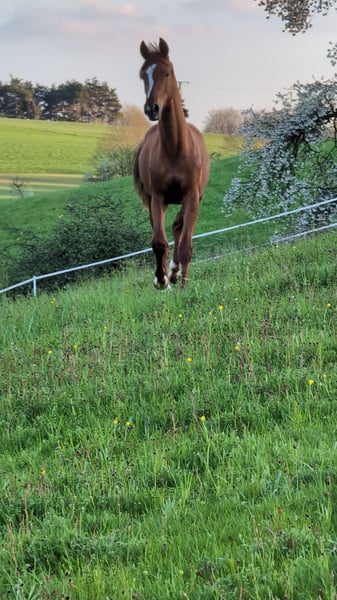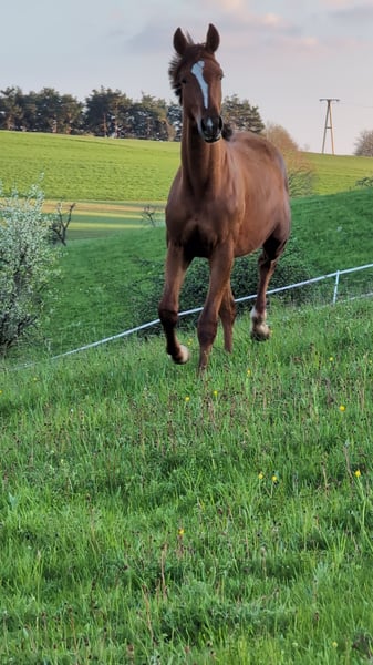 Character, Nobility, and a Sporty Heart For sale is the 20-month-old Hanoverian stallion Escario (born July 7, 2024). A young horse with presence and charisma, distinguished by his remarkable expressiveness and sporting temperament. What makes Escario special: Escario is not a horse for everyone – he is a highly sensitive, fiery personality. He is not a "sleeping pill," but a true athlete with quick comprehension and the necessary "go." If you are looking for a horse with refined communication skills and an appreciation for the extraordinary, you will find here a highly interesting raw diamond. He is absolutely attentive, human-oriented, very trainable, and needs a rider/trainer who can channel his energy effectively. Genetics for the highest demands: Sire: The exceptional stallion Escanto PS (Oldenburg) (by Escamillo). He stands for modern dressage genetics, elasticity, and top performance readiness. Dam: The main mare of the studbook, Fabienne (Hanoverian) (by Fürst Jazz / Totilas bloodlines). She imparts nobility and strength to him. Key Data & Rearing: Name: Escario (Hanoverian) Born: July 7, 2024 (18 months old) Color: Dark chestnut with beautiful markings (blaze, star, three white feet) Location: 67742 Escario is not a desperate sale. I am seeking a partner who recognizes his quality and wishes to promote him purposefully. If seriously interested, I look forward to your message or call to arrange a personal introduction.
