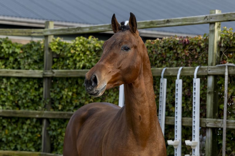 Di Caprio is a modern dressage horse with a well-lined model and a clear uphill build. He stands out for his presence and correct conformation. In movement he shows a very good trot, with a lot of lightness and a quick, active and carrying hind leg. He moves smoothly through his body and demonstrates natural balance and suppleness. In the basic gaits, Di Caprio presents himself in a harmonious and easy way. His movement is light and expressive, making him interesting for riders who are looking for quality in movement. Thanks to his body use and carrying power, he is very suitable for further training towards the higher levels of dressage. Sire Despacito (Don Nobless x Dancier) is approved by the Hanoverian studbook and competes himself at S-level dressage. He carries the blood of Don Nobless, who competed at Grand Prix level, and Dancier, known for passing on rideability and technique up to PSG / Inter I. This sire line is known for producing modern, light-footed dressage horses with a good mentality. Dam Ronja (Rascalino x Rotspon) comes from a strong Hanoverian dressage family. Through Rascalino, this line brings expression, quality basic gaits and clear talent for the sport. This damline has produced several horses successful in both sport and breeding. Second dam Anuschka (Alpenkoenig) is a State Premium and Elite mare and forms a solid foundation within this family. She produced horses with correct conformation, reliability and clear aptitude for dressage. The further damline traces back to classical German dressage lines, where durability, mentality and correct movement are key. A family known for producing functional and honest dressage horses. Di Caprio combines a modern model, strong basic gaits and a pedigree fully focused on dressage performance. An interesting prospect for riders who want to invest in quality and further development.