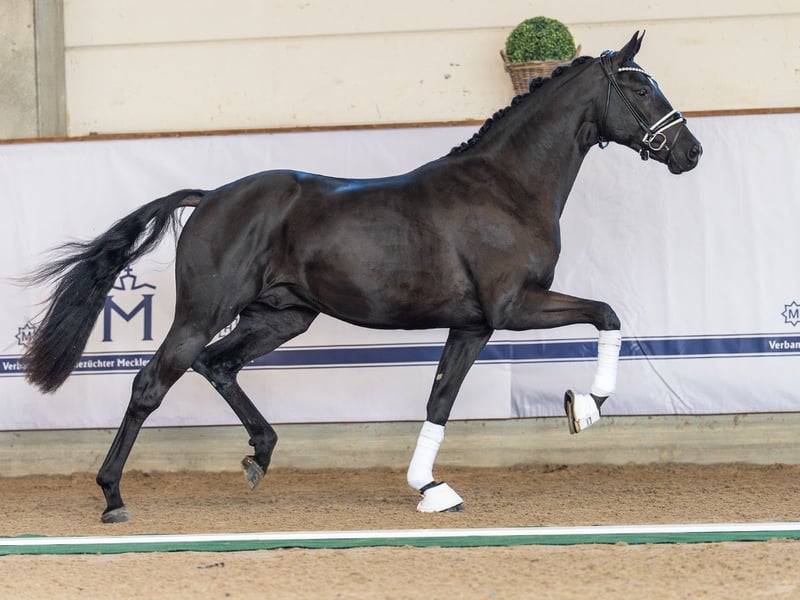 Bon Joker/Stedinger/De Niro This noble and modern sport horse, dressed in a dark coat, impresses with its active movement pattern. With plenty of impulsion from the hindquarters and a secure rhythm, it clearly demonstrates the dressage potential for the big arena. Moving diligently through its entire body in a rhythmic gait, it fulfills the expectations of a modern dressage horse. Father Bon Joker began his career as a premium stallion at Oldenburg licensing days. He impressed with scores up to 9.5 during his 14-day test. Performance Data: Sire: 14-day test, dressage-oriented, final score 8.66; Sport test, dressage focus II, 8.32; DPF M winner. Dam line: Three successful sport horses, including Batista by Nymphenburg (v. Bentley) RPF winner / DPF A successful, Black Jack KH (v. Bon Bravour) RPF / DPF A successful, Vincent 207 (v. Vitalis) DPF A / DRE A* winner. Broodmare line: One approved son: Seneca (v. Stedinger) DPF A / DRE S* winner / DPF L / DRE L* successful; four successful sport horses, including Big Ben MJ (v. Bentley) DPF A / DRE IM I winner / DRE GP successful, Viola 317 (v. Vitalis) DRE A* winner / DPF L / DRE A** successful, Big Ben 151 (v. Bretton Woods) DRE A** successful. Granddam line: One approved son: N.N. (by Fidertanz; sport; Fiderrubin); four successful sport horses, including Daisy 909 (v. Reitland’s Du oder Keiner) DRE L* winner / DRE M** successful, Dude III (v. Dancier) DRE GP (CDIU25) successful, Welfentraum W (v. Wolkentanz I) DRE L* / SPR 95cm successful, Fidergirl (v. Fidertanz) RPF successful. Hanoverian mare line 1188707 (Nuecke) Approved stallions include: Kardinal (v. Krack C), Van Primero (v. Van Vivaldi I), Dimaggio (v. Don Primero), Louis de Funes (v. Louis Ferdinand), Lorbas (v. Luxus), Castanova H (v. Casallco) SPR 150cm / intern. SPR 145cm successful, Duktus (v. Duft I), Lanthan (v. Lucino), Wintertag (v. Wittelsbach), Einblick (v. Eindruck II), Einklang (v. Eindruck II), Askat (v. Agami xx), Coland (v. Continus Grannus), Dresamann (v. Daidalos) DRE S* successful, Grafenberg (v. Grenadier), Air Corrado VO (v. Corrado I) intern. SPR 155cm successful, Catch Twenty Two VO Z (v. Catoki) intern. SPR 145cm successful, Senior (v. Senator), Landjäger G (v. Lanthan) SPR 140cm successful, Rosentau (v. Rubinstein I) DRE * successful, Flawless (v. Fürstenball), Popeye Ass (v. Prestige Pilot). Jumping success: Belvedere 48 (v. Balou du Rouet) SPR 140cm successful, Quimba 5 (v. Quaid I) SPR 140cm successful, Romeo 277 (v. Ritual) SPR 140cm successful, Junior van het Hulst (v. Zürich) intern. SPR 145cm successful, Cora 391 (v. Cordobes I) intern. SPR 145cm successful, Ca va Fazallco (v. Casallco) intern. SPR 145cm successful, Carlotta 217 (v. Contador) SPR 140cm successful, Angeldust (v. Askano) intern. SPR 140cm successful, Chelentano 2 (v. Cassini II) SPR 145cm successful, Continue (v. Contini) intern. SPR 160cm successful, Cortina 170 (v. Copito) intern. SPR 160cm successful, Forlan (v. For Pleasure) intern. SPR 150cm successful, Glenfiddich (v. Grey Top) intern. SPR 140cm successful, First Lady 238 (v. Forsyth) SPR 150cm successful, Fast Lucca (v. Forsyth) intern. SPR 160cm successful, Disney 83 (v. Diamant de Semilly) SPR 140cm successful, Ruby (v. Cilton) intern. SPR 145cm successful, Grand Cru B (v. Hos d’O) intern. SPR 145cm successful, Caspaja (v. Cloney) SPR 140cm successful, Lenarda (v. Lenardo) SPR 140cm successful, Leandra 12 (v. Lindberg) SPR 140cm successful, Filou D (v. Flight High) SPR 140cm successful, Capitano 72 (v. Contendro I) intern. SPR 145cm successful, Cicero 75 (v. Charon) intern. SPR 145cm successful, Doemnitz (v. Derrik) SPR 140cm successful, Amicella P (v. A Conto As) intern. SPR 145cm successful, Fit for Fun M (v. For Pleasure) SPR 140cm successful, Mister Zinedine Junior (v. Mister Zinedine) SPR 140cm successful. Dressage horses with success: Vivian M (DRE S* successful), Charming Casira (v. Casiro I) DRE S* successful, Werther’s Echte 2 (v. Werther) DRE S*, Hilfiger 3 (v. Hotline) intern. DRE IM I successful, Bella Primera (v. Bretton Woods) DRE IM I (USA) successful, Duvetico (v. Detroit) DRE S* successful, Florida Primera (v. Franziskus) DRE PSG (USA) successful, Headmore Difinity (v. Don Primero) intern. DRE IM A / B successful, Wolke 185 (v. Wolkenstein II) DRE S* successful, Daydreamer 2 (v. Daidalos) DRE IM I successful, Solitar (v. San Remo) intern. successful, Daily Romance (v. Don Romantic) intern. successful, Belloona (v. Belissimo M) DRE GP (USA) successful, Taleggio (v. Tomohawk) DRE S*** successful, Save the Last Dance (v. San Remo) DRE S* successful, Charmeur E (v. Captain) DRE IM I successful, Daccapo 3 (v. Don Schufro) DRE S* successful. Eventing horses with success: Una Cardenta (v. Cardento) international CCI3*-L successful, Farina (v. Hofrat/T.) international CCI3*-S successful.