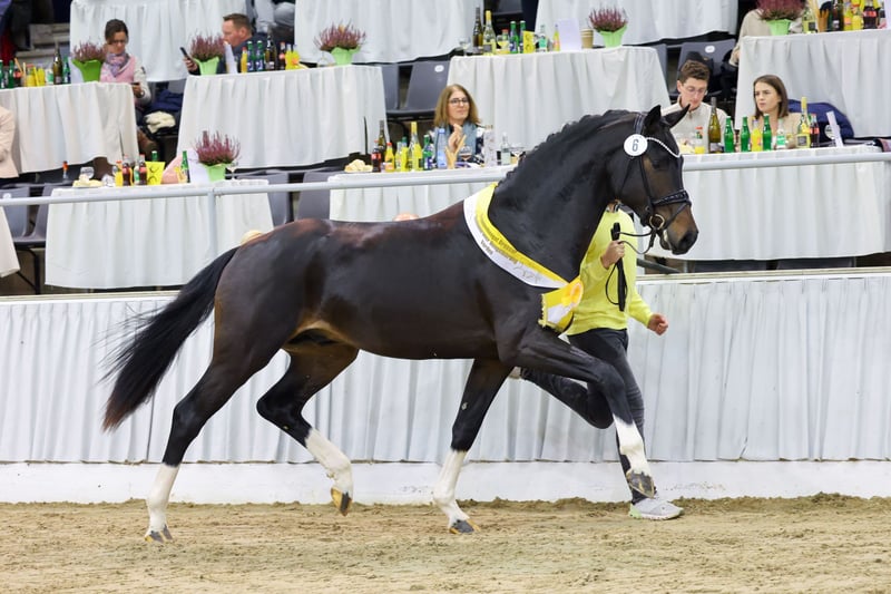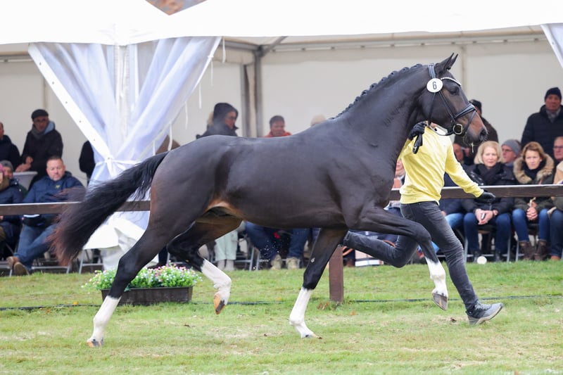 Con Fontainebleau l'ami, estamos encantados de poder presentarle una oferta de cría muy especial. Este ultramoderno vástago de For Romance I x Christ criado por Thomas Ehrengut impresiona no sólo por su importante calidad, sino también por su gran voluntad de rendimiento y su exquisita conformación. interior - atributos de cría fiables que el joven y prometedor semental ya demostró de forma impresionante en su licenciamiento en Verden (2024). Allí impresionó tanto al público experto como al comité de licencias. Dotado de una transmisión sobresaliente, una elasticidad máxima y una óptima elasticidad y un swing óptimo, el elegante semental se presentó de forma impresionante durante toda la semental se presentó de forma impresionante durante todo el evento de concesión de licencias y recibió merecidamente el título de "semental premium". Un semental excepcional del que aún podemos esperar mucho tanto en el plano deportivo como en el de la cría. El impresionante pedigrí de Fontainebleau l'ami combina ambos por parte de padre a través de For Romance - Sir Donnerhall I como por parte de madre a través de Christ - De Niro una genética de doma realmente muy interesante. Licencia: Hannoverian Verband Su padre For Romance I desciende de la exitosa línea materna de Voltaire, el hijo de Furioso II que alcanzó importancia mundial en la cría y el deporte. Bajo la monta de Therese Nilshagen/SWE, cosechó altos puestos en Grandes Premios. El semental campeón y finalista de la Burg Pokal recibió el premio VTV Semental de Doma Clásica del Año 2019 por su extraordinario éxito. Con la madre-semental Christ, Fontainebleau l'ami lleva dentro otro creador de caballos de Gran Premio. Su descendencia es una fuente constante de emoción tanto en el deporte como en las subastas. Él mismo triunfó en la doma clásica hasta el nivel avanzado. Hijo de Competent, nieto de Calypso II, del saltador Picard y del purasangre Daimo xx, Christ ofrece exactamente la diversidad genética que se demanda en la cría moderna de caballos.La madre de Fontainbleau l'amis, Calimera, es hermana de padre y madre del exitoso semental de Gran Premio Cadeau Noir, que consiguió el oro por equipos en los Campeonatos de Europa Sub-25 en Austria en 2024 bajo la dirección de Moritz Treffi nger. Por parte de madre, lleva la sangre de doma más exquisita a través de su abuelo De Niro. Es el semental de doma más laureado del mundo y su palmarés bate todos los récords. Las ganancias totales de su descendencia asciende a más de 3,4 millones de euros.