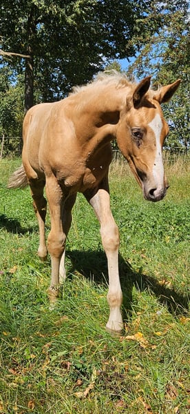 Hannoveraanse hengstveulen Wij zoeken een nieuw thuis voor onze "Qashmere", waar hij liefdevol kan opgroeien. Hij is geboren in juni 2025. "Qashmere" overtuigt niet alleen met zijn gouden vacht, maar vooral door zijn vriendelijke karakter. Hij geniet van dagelijks contact, maar heeft wat tijd nodig omdat hij nog een beetje verlegen is. Zijn gangwerk is soepel, taktzuiver en met goede perspectieven voor de dressuursport. In zijn afstamming komen namen voor zoals... Qandide v. Quasi Gold gaat terug op de beroemde Quaterback x Florescount en van moederszijde stamt hij af van Hochfein x Rubin Royal x Donnerschlag. "Qashmere" is kerngezond en momenteel geniet hij van de tijd met zijn moeder en leert hij alles wat nodig is voor het afzetten. Wij wensen voor hem een liefdevol thuis, omdat zijn verdere welzijn ons zeer ter harte gaat. Bij interesse is hij ook met moeder merrie te koop.