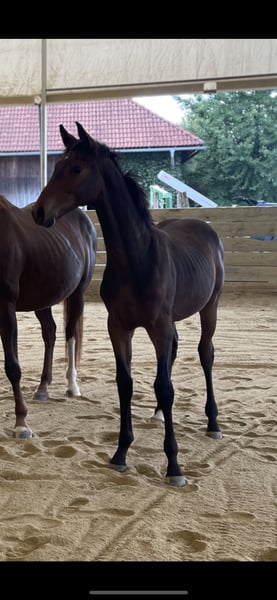 Zum Verkauf steht ein großrahmiges Hengstfohlen mit einem voraussichtlichen Endmaß von 175–180 cm. Er präsentiert sich mit einem guten, kräftigen Fundament, reellen, taktsicheren Bewegungen und viel Ausdruck. Besonders hervorzuheben ist seine taktklare, großzügige Galoppade, die ihn nicht nur für den gehobenen Dressursport, sondern auch für das Voltigieren auf höchstem Niveau interessant macht. Sein ausgeglichenes und ruhiges Wesen macht ihn zudem zu einem unkomplizierten Nachwuchspferd im täglichen Umgang. Abstammung: Macchiato x Belissimo M – eine vielversprechende Blutführung mit bewährter Qualität für Sport und Zucht.