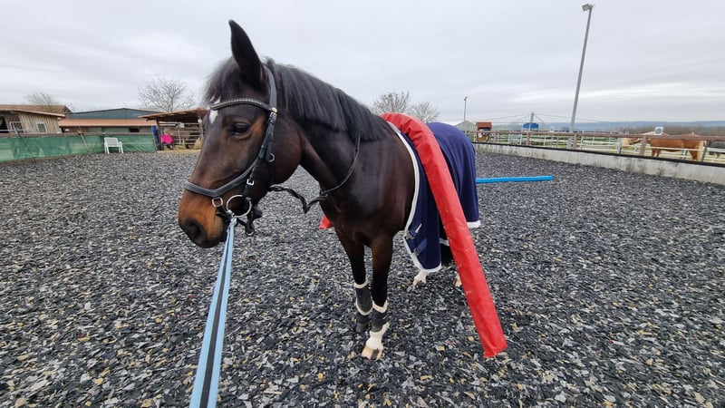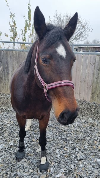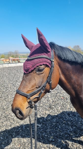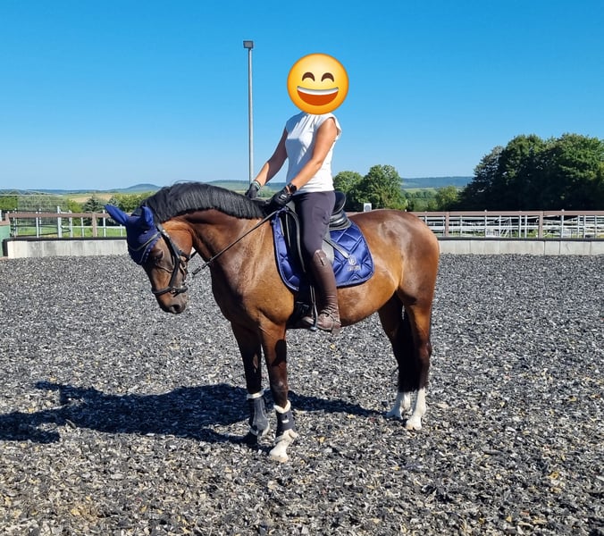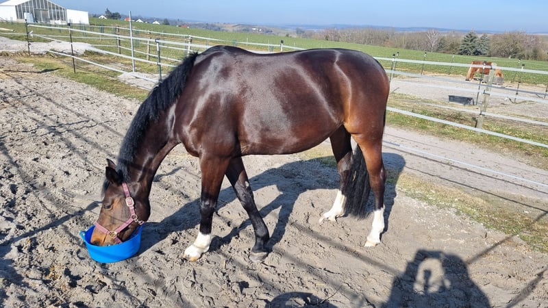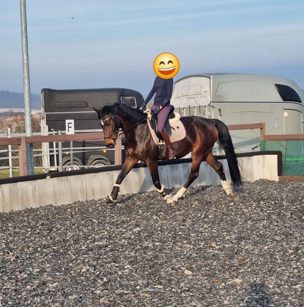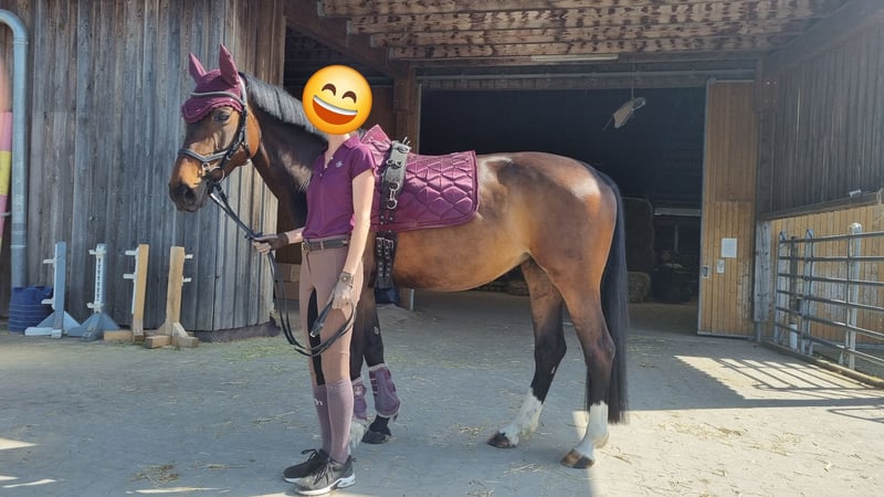 For sale is a charming, stunning dark bay mare by Diacontinus, excelling with three excellent basic gaits. Her trot mechanics and pleasant riding sensation are particularly noteworthy. She is highly trainable and quickly adapts to new exercises. After a day off, she is always manageable and attentive to her handler. This mare has a lovable, people-oriented character and is consistently clear-headed, friendly, and uncomplicated in daily handling. She always aims to please her rider. Over the past year, she has been ridden exclusively on an outdoor riding arena, making her well-acquainted with environmental stimuli such as farm machinery, animals, cyclists, children, etc., as well as various weather conditions. Under saddle, she requires a confident and secure rider who can set the working mode and boundaries with a gentle hand. Then, she is an absolute dream to ride! Suitable for ambitious amateurs at a good A-level, so not an entry-level horse. She has been ridden recreationally and trained up to A-level dressage, showing significant potential for further development. Her pedigree suggests talent over fences, although this has not been specifically trained recently. A versatile career in eventing is also possible. She has no competition experience to date. Her health is particularly noteworthy. She has been veterinary checked and is currently in excellent condition. No previous illnesses, allergies, or old injuries. She is barefoot with very good hooves. She has been regularly seen by osteopaths, chiropractors, dentists, and farriers. She has been vaccinated against tetanus and influenza (next due Dec. 2025) and dewormed most recently in Nov. 2025. Handling and feeding are straightforward. She is looking for a few dedicated riders, ideally a person she can form a close bond with and trust. A wonderful, characterful mare with a lot of charisma and quality! To prevent ride tourism, a fee of €40 is charged for a trial ride.