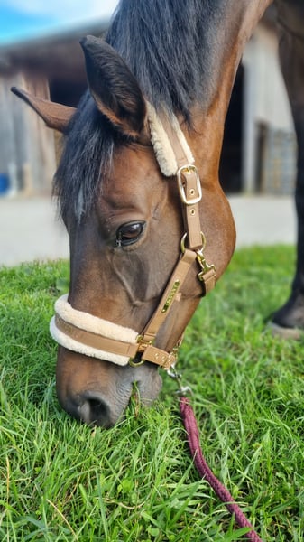 Zum Verkauf steht eine bezaubernde, bildhübsche dunkelbraune Stute von Diacontinus, die mit drei tollen Grundgangarten überzeugt. Besonders hervorzuheben sind ihre Trabmechanik, sowie das angenehme Reitgefühl. Daneben ist sie äußerst lernfähig und kann Neues sehr schnell umsetzen. Nach einem Pausentag ist sie stets handelbar und aufmerksam gegenüber ihrem Menschen. Diese Stute hat einen liebenswerten, menschenbezogenen Charakter und zeigt sich im täglichen Umgang stets kopfklar, freundlich und unkompliziert. Sie möchte ihrem Menschen immer gefallen. Sie wurde das letzte Jahr ausschließlich auf einem Außenreitplatz geritten und ist daher umfänglich Umwelt (landwirtschaftliche Maschinen, Tiere, Radfahrer, Kinder etc) und Wetter erprobt. Unter dem Sattel benötigt sie einen souveränen und sicheren Reiter, der ihr den Arbeitsmodus und den Rahmen mit feiner Hand vorgibt. Dann ist sie ein Traum zum Reiten! Für ambitionierte Amateure ab gutem A-Niveau, daher kein Anfängerpferd. Bisher wurde sie freizeitmäßig geritten und ist in der Dressur auf A-Niveau ausgebildet, zeigt aber viel Potenzial für eine weiterführende Ausbildung. Ihre Abstammung lässt erahnen, dass sie auch Talent am Sprung hat, was zuletzt aber nicht gefördert wurde. Denkbar wäre auch ein Platz in der Vielseitigkeit. Bisher keinerlei Turniererfahrung. War bis siebenjährig in der Zucht und wurde daher spät angeritten. Daneben ist besonders ihre Gesundheit hervorzuheben. Sie ist tierärztlich untersucht und aktuell kerngesund. Hat keine Vorerkrankungen, Allergien, keine Unfälle/ alten Verletzungen. Sie läuft barhuf und hat sehr gute Hufe. Sie wurde regelmäßig bei Osteo, Chiro, Zahnarzt und Hufpflege vorgestellt. Sie wurde regelmäßig gegen Tetanus und Influenza geimpft (Dez.´25), sowie entwurmt (zuletzt Nov.´25). Sie ist im Handling und in der Fütterung unkompliziert. Sie wünscht sich wenige Reiter, am besten eine Bezugsperson, der sie ihr Herz schenken kann. Eine tolle, charakterstarke Stute mit viel Charisma und Qualität! Um Reittourismus vorzubeugen werden 40€ für den Proberitt erhoben.