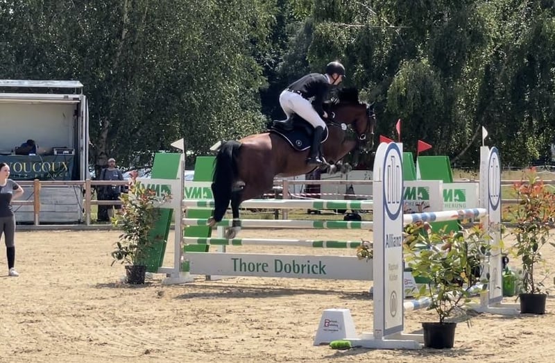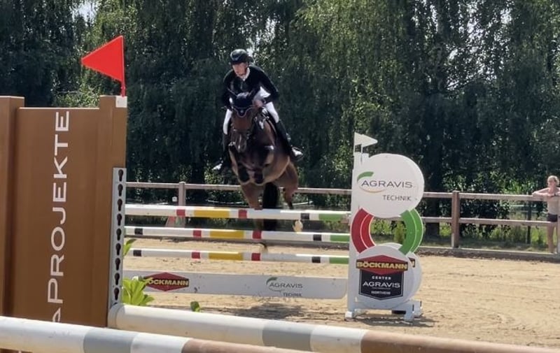 I am selling my beautiful 10-year-old Hanoverian mare by Graf Top * Accord II due to time constraints. I purchased her directly from her breeder at the beginning of 2024. From her dam line, a half-sister has been successful under Pius Schwitzer. When I bought her, she was still relatively green and could be further trained by an amateur for me. In 2024, she had a fantastic season, winning A** and L show jumping classes and placing in every competition. At the same time, she patiently did a few small jumps with me as a beginner, providing a great introduction to jumping at home. Unfortunately, in 2025, I was unable to compete with her due to personal reasons. She truly enjoys jumping, is not spooky at the jumps, and always wants to make it to the other side, even with a beginner rider. She is very responsive, well-behaved, and shows no stallion-like behavior. She always aims to please her rider and enjoys daily work, whether riding, jumping, hacking, or lunging in double longe. I can easily imagine her being suitable for younger riders or amateur riders. She is confident in the terrain, shoe and load calm, and has also been very well-behaved at competitions. She comes out to her paddock every day and spends the night in a box stall. Previously, she was kept in a large herd at her breeder’s and is compatible with other horses. I am looking for a loving and caring home for her. Priority goes to the well-being of the horse. No sales to dealers. She is available for trial rides. A fee of €35 will be charged for the trial to discourage tour riding, which will be deducted from the purchase price if she is bought. X-rays from 2023 are available from my purchase; more recent images would need to be taken by the new owner. Further photos or competition and training videos are available upon request. If interested, please contact me via email.