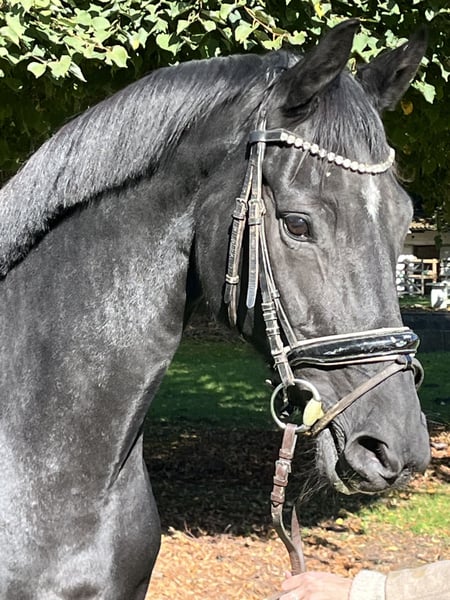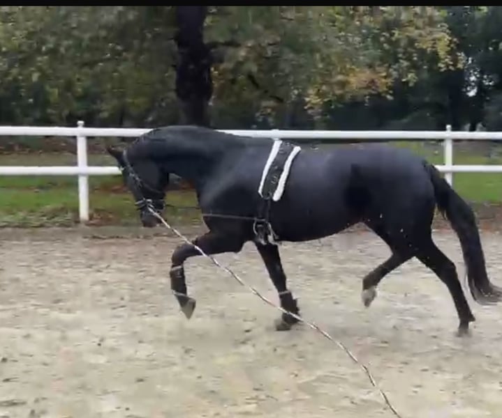 On behalf of Beautiful premium black mare by van Vivaldi for sale. Three very good gaits and an absolutely fantastic rideability characterize this premium mare. She is a pleasure to ride, easy in the contact, and provides a very nice feeling in the saddle. She has achieved a very good SLP with scores of 8.5. She brings joy every day. She is well-mannered and shows herself to be fearless under the saddle. She has also been used for breeding and is doing a very good job in that area as well. Current X-rays are available. She is a true presence, and we look forward to appreciative hands. Price plus VAT. Location: Hamm.