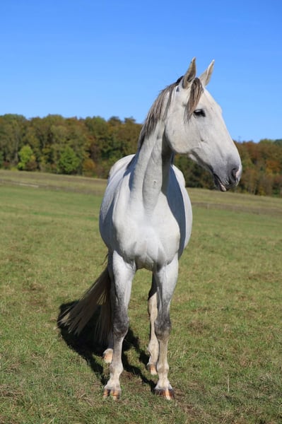 Por este medio buscamos un lugar adecuado para nuestra maravillosa y gris Hannoverana, una yegua de cría. Tiene una buena línea de sangre (padre: GREY TOP, madre: CALIDO I) con una línea materna muy bien consolidada. Lamentablemente, sufrió una lesión en el ligamento suspensorio, que aunque se ha recuperado bien, ya no debería volver a competir en deportes ecuestres. Antes de su lesión, fue exitosa en concursos de salto hasta la categoría Gran Premio (S*). Mide aproximadamente 1,75 m, cuenta con excelentes movimientos básicos y es muy dócil.