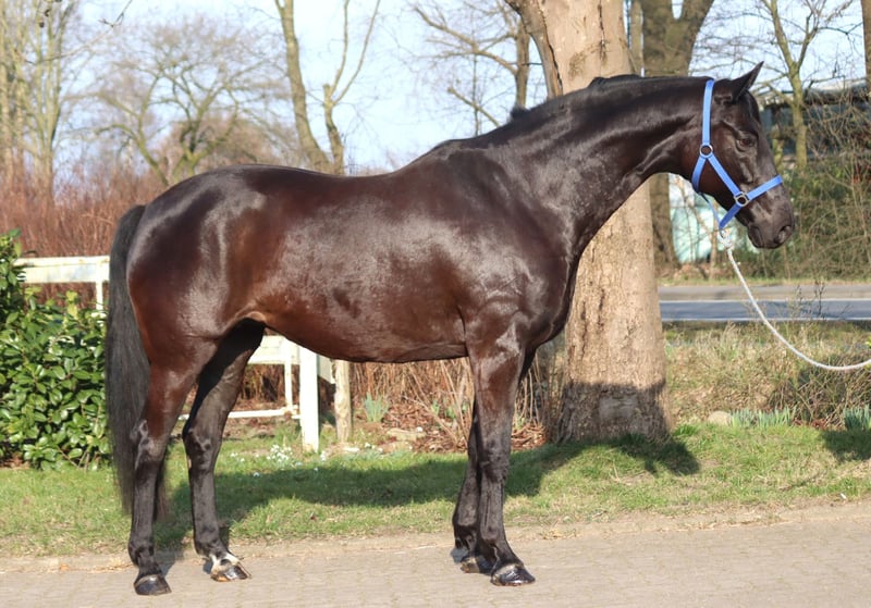 Sympathische 10 jährige Rappstute von Don Index x Daidalos, mit guten Bewegungen. Sie wurde 3 jährig angeritten, und danach in der Zucht eingesetzt. Sie eignet sich als Zuchtstute, Beistellpferd und könnte gegebenen Falles wieder antrainiert werden. Preis zzgl. Mwst. Anfragen nur telefonisch, E-mails werden nicht beantwortet.