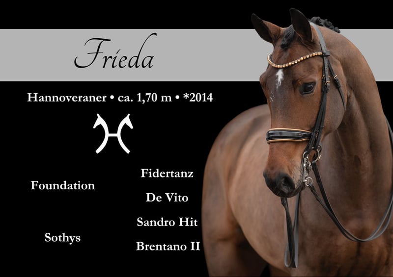 Dear Interested Parties, For appointment bookings and test rides, please send me a WhatsApp message. During the day, I am available via WhatsApp for any questions, and you can reach me best by phone between 4 PM and 7 PM. I look forward to hearing from you. www.angelina-devittorio.de ⭐️Frieda⭐️ Age: 11 years (2014) Height: 16.1 hh Pedigree: Fidertanz x Sandro Hit Training level: M* level Health certificate: Good health certificate including X-rays available For sale is a stunning 11-year-old daughter of Fidertanz, who immediately wins hearts with her beautiful appearance and lovable character. This mare impresses not only with her sweet nature but also with her excellent basic quality. She is very pleasant to ride and always provides her rider with a confident, secure riding experience. In training, she is very consistent at M* level and always eager to work. She is extremely comfortable to sit and light in the hand, and riding her in a snaffle bit is simply a pleasure. She also has plenty of go, making every day a joy—whether in daily work or in the field. She is also very well-behaved and calm in the outdoor arena. Her owners are seeking a new, loving home and would love to place her with caring owners. She is immediately ready for L and M* level competitions. In the field, she is well-behaved and reliable; in daily handling, she is affectionate, friendly, and truly a heart horse. She wants to please her human and is a loyal partner who will make her future rider—especially those who enjoy fine riding and a harmonious partnership—completely happy. Good health certificate including X-rays available. ⚜️Phone: 0171-3438949 ⚜️a.devittorio@web.de ⚜️https://www.ehorses.de/angelinadevittorio Facebook and Instagram: Angelina De Vittorio