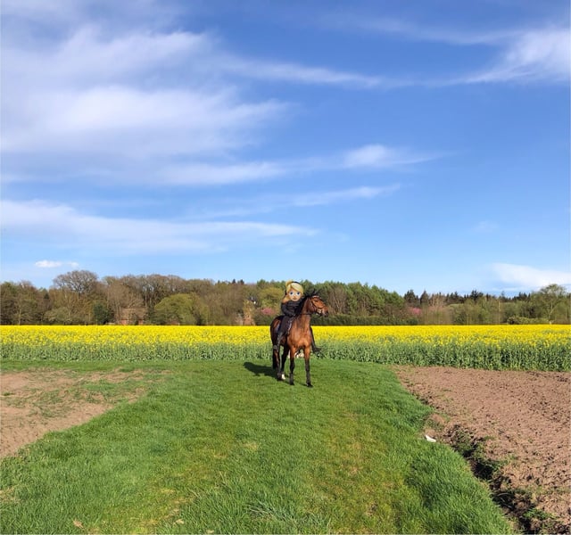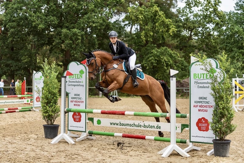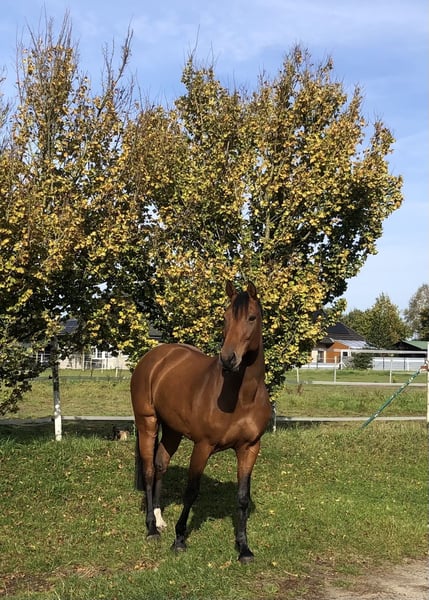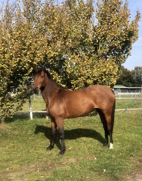 Since my daughter decided to start university immediately after her stay abroad, we have made the difficult decision to sell our Hanoverian mare Zara. Zara is a truly lovable, people-oriented horse with an excellent temperament. She impresses not only with her friendly nature in everyday handling but also as a versatile all-rounder. Her main focus is typically show jumping. In the arena, she independently finds the right distance and impresses with her caution and excellent jumping ability. She has a lot of scope and sometimes reacts a bit sensitively to her environment, so she requires an experienced rider who can give her confidence. At competitions, she has competed and placed in jumping classes up to class A**. Dressage-wise, she is pleasant to ride, responds well to aids, and is easy to handle. Zara also comfortably rides in the terrain both alone and in a group. Due to the lack of an experienced rider, she has not jumped in the past 10 months but has been ridden exclusively in dressage, in the terrain, or worked on the lunge and ground work. Zara is very good with other horses and is kept in a traditional box stall with full-day, year-round turnout. In January 2023, she underwent arthroscopy due to a pasture injury. However, she successfully competed again in a show jumping event in July 2023. Due to her retirement from competitive riding, all equipment can be purchased together for €1,500, including: • Jump saddle (Passier Avior) • Dressage saddle • Micklem bridle (Rambo) • Rugs (summer/winter) • Grooming tools, halter, fly mask, etc. Zara is healthy and can be visited and tried out at any time. As mentioned, she has not jumped in recent months, but a few jumps could be arranged to showcase her potential. We are looking for a person who is willing to invest time in her and provide her with a loving home with ample turnout. She will only go to the best hands. If you are interested, we look forward to your call or message.
