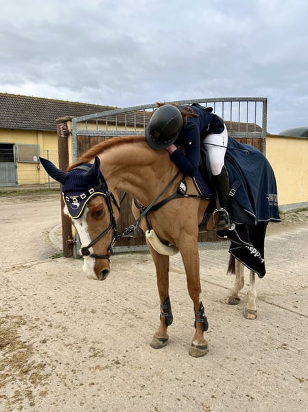 Bella Luna 15 ist eine 13 jährige, 168cm große Stute von Balou du Rouet x Escudo I x Wanderer. Wir haben sie im Jahr 2021 9 jährig erworben und die Stute ist seitdem unter einer jugendlichen Amateurin mehrfach S Springen platziert und hat mehrere M Springen gewonnen. Luna ist ein sehr ehrgeiziges, vermögendes und ehrliches Pferd mit angenehmem Go im Parcours. Die Stute möchte immer gefallen: so auch zuhause, in der Dressur und im Gelände (auch im VS-Parcours). Sie ist trotzdem nicht für Anfänger geeignet, da sie beim Reiten manchmal etwas guckig sein kann. Im Umgang ist sie sehr unkompliziert, sodass ich auch immer mit ihr alleine im Gelände und zum Turnier unterwegs war. Auch Ausritte ohne Sattel sind kein Problem. Logischerweise ist sie auch schmiede- und verladefromm. Luna hat außerdem mütterlicherseits 2 S erfolgreiche Geschwister (einer 145 & der andere 140) und entstammt einem sehr guten Hannoveraner Stamm, was sie sicherlich auch nach ihrer sportlichen Karriere für die Zucht interessant machen würde. Die Stute wird aufgrund von Zeitmangel, wegen meines Medizinstudiums, verkauft. Röntgenbilder ohne Befund von Januar 2021 sind vorhanden. Es ist kein Notverkauf. Luna soll für einen angemessenen Preis ein tolles neues Zuhause finden.