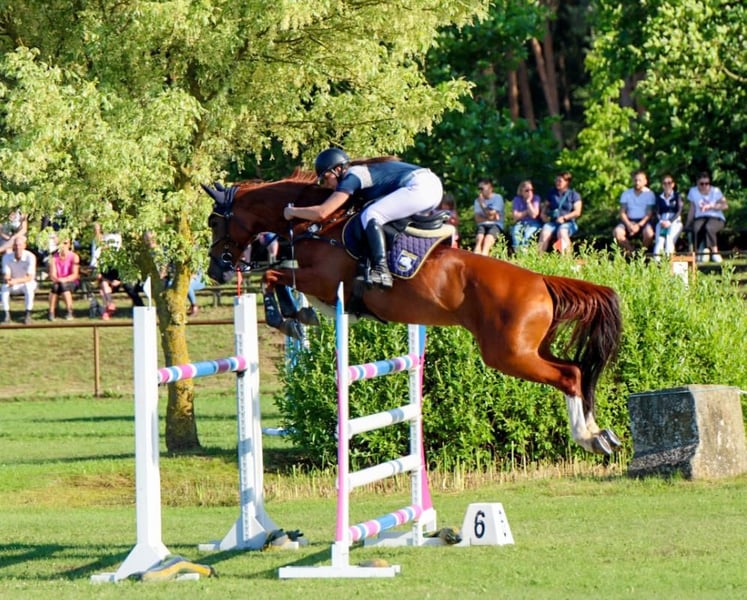Bella Luna 15 is a 13-year-old mare standing at 16.1 hh, sired by Balou du Rouet out of Escudo I x Wanderer. We acquired her in 2021 when she was 9 years old, and since then, she has been successfully competing in youth amateur show jumping, placing multiple times and winning several small classes. Luna is a very ambitious, talented, and honest horse with a pleasant go in the arena. She always wants to please, whether at home, in dressage, or on trail rides (including cross-country). However, she is not suitable for beginners, as she can sometimes be a bit spooky when ridden. In handling, she is very straightforward, which allowed me to go alone with her on trail rides and to competitions without issues. She also has no problem with free lunging or being ridden without a saddle. Naturally, she is farrier- and loading-friendly. Luna also comes from a very good Hanoverian lineage on her dam’s side, with two successful siblings in S-level dressage (one at 145 cm and the other at 140 cm), making her potentially interesting for breeding after her sporting career. She is being sold due to lack of time because of my medical studies. X-rays from January 2021 show no findings. This is not an emergency sale; Luna deserves a wonderful new home at a fair price.