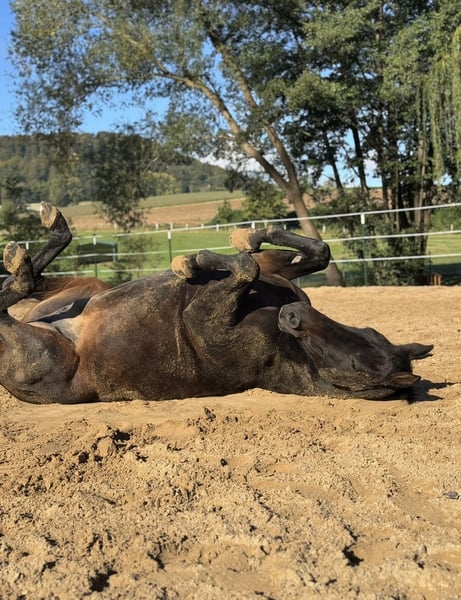Wir suchen ,durch zeitliche und private Änderungen, ein 5 Sterne Zuhause für unsere liebevolle Hannoveraner Stute ,,Ricarda‘‘. Rike ist 14 Jahre alt, hat ein Stockmaß von 168cm und ist abstammend von Riccidoff x Royal Dance. Bei uns wurde Rike vielseitig eingesetzt, ob als Springbegleiter, Vierecktänzer, Spaziergänger ,oder auch einfach zum Quatsch machen im Gelände- auch auf dem Platz. Sie war bei allen Ideen motiviert dabei, und macht jeden Quatsch mit. Sie bringt bereits Turniererfahrung mit und wurde auch schon in der Dressur bis A* vorgestellt- dass wurde bei uns ,jedoch nicht weiterhin gefördert. Rike hat mittlerweile den Spaß am Springen gefunden, wobei Sie jedoch einen Reiter benötigen, der Ihr Mut zuspricht und bei Ihr ist. Niveau A-L ist dort jedenfalls machbar. Traktor, kleine Kinder, Hunde, laute Geräusche… ist für Sie absolut kein Problem. Auch Verladefromm. Derzeit ist Sie komplett beschlagen. Ricarda ordnet sich in der Herde direkt ein und ist ein Rangniedriger Begleiter- komplett verträglich mit jedermann. Bei Interesse meldet euch super gern!!