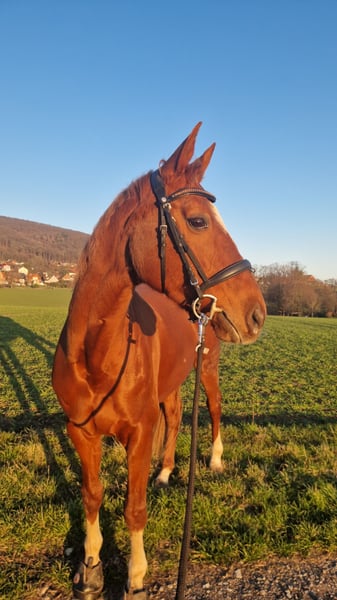 Hallo, auf diesem Weg suche ich nach einer zuverlässigen Pflegebeteiligung für mein Pferd. (wenn alles passt, auch gerne als Reitbeteiligung) Delight ist eine 15 jährige, 168 cm große, eher zierlich gebaute Hannoveraner Stute. Sie ist sehr charakterstark und braucht eine gewisse Konsequenz, trotzdem ist sie sensibel und benötigt Sicherheit vom Menschen. (Aufgrund ihrer schlanken Statur, sollte sie nicht mehr als 70 kg tragen) Delight wird freizeitmäßig gearbeitet und ist eher flott unterwegs. Was wir von dir erwarten: Du solltest verantwortungsbewusst, volljährig, zuverlässig und konsequent sein und nicht vor ein bisschen Stallarbeit zurück schrecken. Außerdem solltest du etwas wetterfest sein, da der Stall keine Halle hat. Du könntest 1-2 mal pro Woche zu uns kommen und uns unterstützen. Zum Stall: Delight steht in einem kleinen Stall, der über einen Reitplatz mit Licht und gutem Boden verfügt, der auch bei schlechtem wetter nutzbar ist. Zusätzlich haben wir schönes Ausreitgelände im Wald zu bieten. Der Stall befindet sich in 31737. Wenn dich das nicht abgeschreckt hat, meld dich doch gerne!