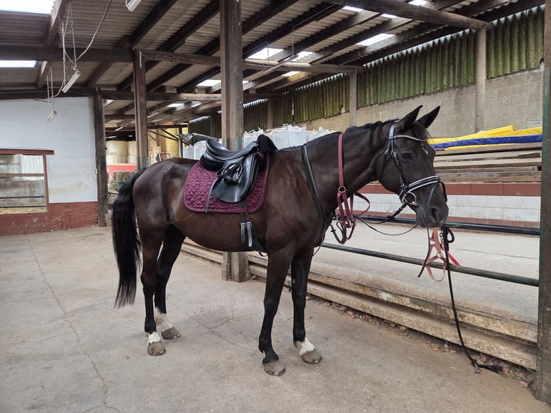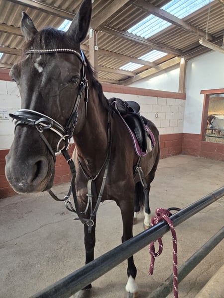 Hannoveraner Stute (15 J.) | ca. 170 cm | Freizeitpartnerin mit tollen Gängen Zum Verkauf steht eine schöne Hannoveraner Stute, geboren am 25.04.2011. Ich verkaufe sie, da wir leider nicht optimal zusammengefunden haben und ich ihr ein passenderes Zuhause wünsche. Infos zur Stute 15 Jahre alt Stockmaß ca. 170 cm Freizeitmäßig englisch geritten Kennt Halle, Platz und Gelände Sehr sitzbequeme Gangarten Reagiert sehr gut auf Stimme Kennt Longieren, Doppellonge und Bodenarbeit Gesundheit & Umgang Seit Januar barhuf – problemlos Brav im Handling, unkompliziert bei Schmied und Tierarzt Zähne gemacht: September 2025 Entwurmt: Dezember 2025 Haltung Aktuell steht sie in Boxenhaltung mit täglichem Auslauf. Im Sommer ist sie 24/7 auf der Koppel in einer reinen Stutenherde. Vorgeschichte Sie hatte bereits ein Fohlen und wurde früher im Springsport eingesetzt. Bei mir wurde sie jedoch ausschließlich freizeitmäßig geritten – Springen haben wir nicht ausprobiert. Wichtig Die Stute ist nicht für Anfänger geeignet, da sie in manchen Situationen guckig sein kann und in unsicheren Momenten auch mal einen Satz zur Seite macht. Sie ist dabei nicht bösartig, sondern sensibel und braucht einen Reiter, der ihr Ruhe und Sicherheit vermittelt. Bei ernsthaftem Interesse freue ich mich über eine Nachricht. Um den Reittourismus entgegen zu wirken, wird pro Probereiten eine Pauschale von 20€ erhoben, welche selbstverständlich beim Kauf verrechnet werden.