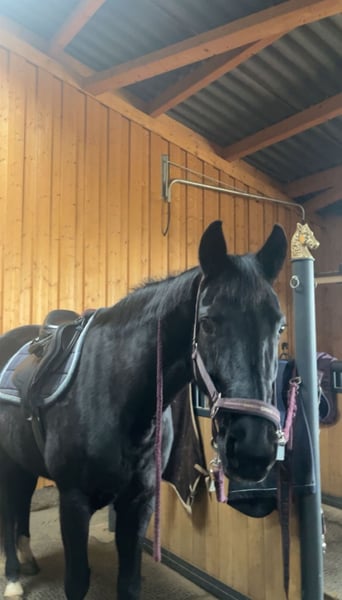 🖤 Traumhafte Rappstute sucht ihr Herzenszuhause 🖤 Mit schwerem Herzen, aber im Sinne des Pferdes, suche ich für meine wundervolle Stute Sarabi ein neues, liebevolles Zuhause. Sie wurde am 25.04.2010 geboren, ist 1,64 m groß und überzeugt nicht nur durch ihre Erscheinung, sondern vor allem durch ihr angenehmes Wesen. Aufgrund einer eigenen Knieverletzung, die mich für mindestens sechs Monate außer Gefecht setzt, kann ich Sarabi aktuell nicht so fördern und begleiten, wie sie es verdient. Deshalb wünsche ich mir für sie einen Menschen, der ihr die Aufmerksamkeit, Bewegung und Fürsorge schenken kann, die sie braucht. Sarabi kennt sowohl den Offenstall als auch die Boxenhaltung mit täglichem Auslauf. In der Herde zeigt sie sich ehr Ranghoch aber niemals aggressiv anderen Pferden gegenüber. Sie ist absolut alltagstauglich: Autos, Hunde, landwirtschaftliche Maschinen, Kühe, Schafe, Hühner und Kinder bringen sie nicht aus der Ruhe. Im Umgang ist Sarabi ein echter Schatz – freundlich, unkompliziert und zuverlässig. Beim Reiten ist sie stets brav, ohne Buckeln oder Steigen. Im Gelände geht sie entspannt in der Gruppe, testet jedoch hin und wieder daher kein Anfängerpferd. Zudem ist sie schmiede- und verladefromm. Derzeit läuft sie vorne mit zwei Eisen, die sie bei regelmäßiger Arbeit benötigt. Sarabi war zwei Jahre lang meine Reitbeteiligung und gleichzeitig Therapiepferd, bevor ich sie Ende 2024 übernommen habe – sie kennt also verschiedenste Reiter und Situationen. Bei der AKU zeigten sich leichte arthrotische Veränderungen, die laut Nachuntersuchung stabil und unproblematisch sind und sie in keiner Weise einschränken. Ausgebildet ist Sarabi in Dressur und Springen bis Klasse L und wurde im Springen und der Dressur bis Klasse A auf Turnieren vorgestellt. Da ihr der Turniersport auf Dauer zu viel Stress bereitet, wünsche ich mir für sie ein Zuhause ohne sportlichen Leistungsdruck – gerne als Freizeitpartner, Lehrmeisterin oder wertvolle Zuchtstute. Sie hatte bereits ein Fohlen und bringt eine sehr gute Abstammung mit. Dies ist kein Notverkauf. Ein passender Platz ist mir wichtiger als der Preis. Bei ernsthaftem Interesse freue ich mich sehr über eine Nachricht. Videos sende ich gerne auf Anfrage. 📞 Kontakt: 0174 2169059