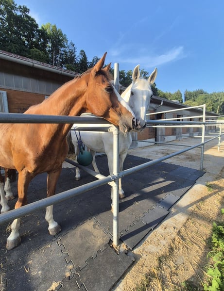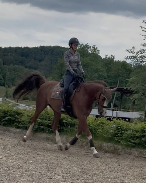 Hallo, ich suche für meine 2 Pferde Cashmere (16) & Bo (14) aus zeitlichen Gründen eine zuverlässige Reitbeteiligung. Beide sind ehemalige Turnierpferde im Springen, werden inzwischen aber eigentlich ausschlißlich dressurmäßig geritten. Auch Spazieren und Longe macht ihnen Spaß. Sie sind fein zu Reiten, Cashmere ist allerdings etwas schreckhaft, weshalb du Ruhe und Erfahrung mitbringen solltest. Du solltest außerdem mindestens auf gutem A/L Niveau dressurmäßig reiten und ein geduldiger & freundlicher Umgang mit den Pferden ist mir sehr wichtig. Bezüglich wie oft und welcher Preis werden wir uns sicher einig. LG Anja Whatsapp 015236801219