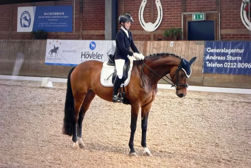Elegante Hannoveraner Stute mit besten Anlagen – eine besondere Chance für die Zucht Mit unserer Stute Bentley’s Dream bieten wir eine besondere Hannoveraner Stute an, die bis S** ausgebildet und S*-platziert ist. Sie vereint sportliche Qualität, modernes Exterieur und einen sehr angenehmen Charakter. Da wir überzeugt sind, dass man mit den besten Pferden züchten sollte, möchten wir dieser Stute bewusst die Möglichkeit geben, ihre hochwertigen Anlagen weiterzugeben. Da wir selbst keine Zucht betreiben, wünschen wir uns für sie ein liebevolles und fachkundiges Zuhause, in dem ihr züchterisches Potenzial geschätzt und genutzt wird. Die Stute hat ein Stockmaß von ca. 170 cm und präsentiert sich als feines, modernes Warmblut. Sie ist sehr menschenbezogen und fein im Umgang. Bentley's Dream ist mit drei sehr guten Grundgangarten und einem aktiven, kraftvollen Hinterbein ausgestattet, was sie für die Zucht sehr interessant macht. Bisher hatte die Stute noch keine Fohlen. Weitere Informationen geben wir gerne auf Anfrage und freuen uns über ernst gemeinte, wertschätzende Anfragen.