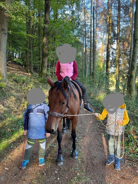Schweren Herzens suche ich aus zeitlichen Gründen ein neues, liebevolles Zuhause für meine 19-jährige Hannoveraner Stute Ella (ca. 1,60–1,62 m). Ella ist eine sehr hübsche, erfahrene und vielseitige Allrounderin. Ob Dressurarbeit (aktuell bis A-Niveau, L-Lektionen angeritten), entspanntes Ausreiten, Bodenarbeit, Longe oder kleine Sprünge – sie ist mit Freude dabei und reagiert fein auf Hilfen. Sie ist ein charakterstarkes Pferd, das eine klare und ruhige Führung braucht. Hat sie diese, zeigt sie sich zuverlässig und loyal. Damit ist sie auch als Familienpferd denkbar – mit entsprechender Unterstützung durch erfahrene Erwachsene. Im Alltag ist Ella souverän: Landmaschinen, Windräder, Hunde etc. kennt sie gut. Fremden gegenüber ist sie anfangs etwas skeptisch, fasst aber schnell Vertrauen. Aktuell läuft sie barhuf (war auch schon beschlagen), ist brav beim Hufschmied und regelmäßig geimpft sowie osteopathisch betreut. Verladen ist aktuell wenig Routine und sollte wieder geübt werden. Sie hat EOTRH, kommt derzeit aber gut damit zurecht und ist im Alltag unauffällig. Mir ist besonders wichtig, dass Ella in ein liebevolles, verlässliches Zuhause kommt, in dem sie weiterhin abwechslungsreich beschäftigt wird. Platz vor Preis ❤️ Anfragen gerne auch per Telefon / WhatsApp 017624641348