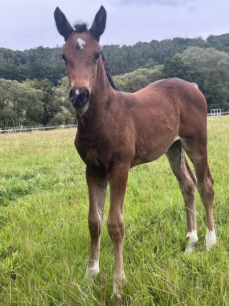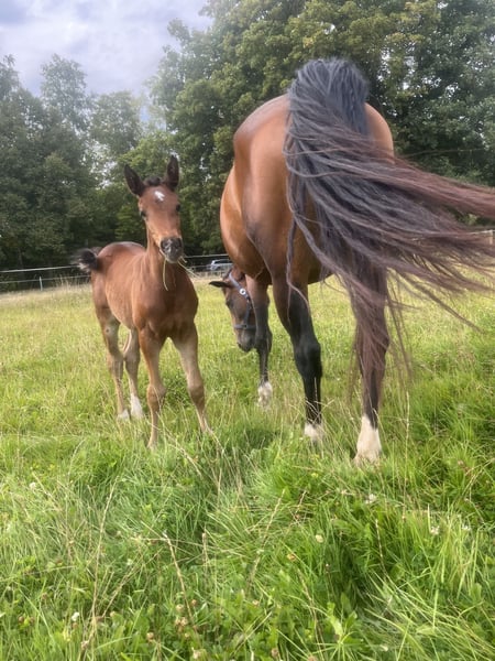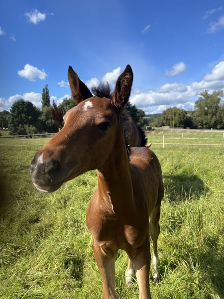 Zum Verkauf steht ein sehr typvolles und ausdrucksstarkes Hannoveraner Stutfohlen, das mit edlem Erscheinungsbild, korrektem Fundament und guten Grundgangarten überzeugt. Die Bewegungen sind elastisch, taktsicher und altersgemäß. Die Mutter stammt aus dem leistungsbewährten Stutenstamm der Germanin, der für Qualität, Rittigkeit und sportliche Erfolge bekannt ist. Mutterabstamung: Grace x Conteur (siehe Bilder) Der Vater ist unser eigener Hengst „Hugo“ (Trakhener/Zangersheide) von Hakira x Sun-Wil-BL` S Z Ein aufmerksamer, neugieriger, menschenbezogener Charakter gepaart mit guten Grundgangarten lassen bei dieser Maus keine Wünsche offen für eine Zukunft mit Perspektive sowohl im Springen als auch für die Dressur. Geboren am 03.08.2025 Wird voraussichtlich +/- 1,70m Regelmäßig Entwurmt Bei ernsthaften Interesse schicke ich gerne nähere Infos und aktuellere Bilder Bild mit Abstammungen ist die von der Mutter! Nicht vom Fohlen. Der Pass ist aktuell beim Hannoveraner Verband für eine Korretur und dürfte in kürze wieder zurück sein! Preis ist vhb, bzw. kann auch ein Preisangebot genannt werden, uns ist es wichtiger das sie in gute fördernde Hände kommt! :) wird nur aus privaten Gründen Verkauft!