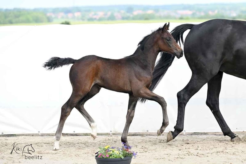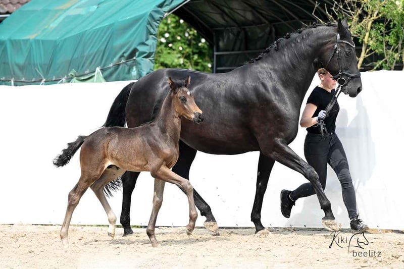 Dieses Bildschöne Stutfohlen stehen alle Türen offen. In Edler Aufmachung ist sie auch mit einer spitzen Bewegungsqualität ausgestattet die Ihren Vater Fidertanz erkennen lässt. Fidertanz selbst war selbst bis Grand Prix erfolgreich, Hannoveraner Hengst des Jahres 2021 und aktuell unter den Top 12 der WBFSH Sire Ranking. Ihre Mutter ist Halbschwester zu Elastic der 2023 Bronze bei der Weltmeisterschaft der jungen Dressurpferde gewann und dem Prmienhengst " Vitaggio". Ihr Vater St Schufro ebenfalls Siegreich auf großer Bühne. Eine weitere Aufzucht wäre bei uns möglich. Gern können Sie sich im Internet unter www.hannoveranerzucht-pickbrenner.de ein kleinen Eindruck unserer Hobbyzucht machen