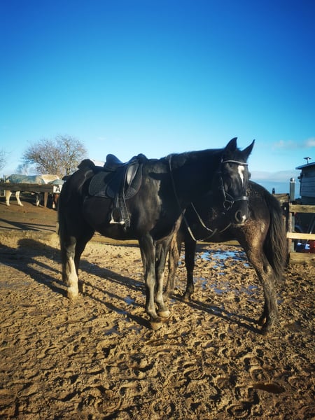 Hallöchen, Ich suche nach einer Reitbeteiligung für meine Stute. Sie braucht jemanden mit reiterlicher Erfahrung, der keine Angst vor go hat und und fein reiten kann. Hailey ist eine kleine Prinzessin. Sie war beim Vorbesitzer lange Zuchtstute mit Leidenschaft. Ich habe selber auch noch ein letztes Fohlen aus ihr gezogen vor 2 Jahren. Daher ist sie reiterlich sehr unverbraucht, trotz ihres Alters. Vor 5 Jahren ist sie zu mir gekommen, es war liebe auf dem ersten Blick. Wunderschön, ganz fein zu reiten und sensibel. Seitdem reite ich sie und wir haben gemeinsam auch schon ein paar Aufgaben wie den Trainerschein zusammen gemeistert. Reiterlich ist sie in sofern nicht ganz einfach, dass sie sehr schwungvolle Gange besitzt und gleichzeitig sehr mobile ist und empfindlich im Maul. Sie versucht immer alles richtig zu machen und wenn sie einen Mal nicht versteht neigt sie dazu sich in ein wenig mehr vorwärts zu flüchten um sich Stabilität zu holen. Die Trächtigkeiten gehen natürlich auch nicht spurlos am Körper vorbei, daher versuchen wir sehr viel auf eine gute Rückenlinie zu achten und an Selbsthaltung zu arbeiten. Sie hat in der Dressur und auch im springen sehr viel Potential. Mir persönlich ist in erster Linie allerdings Gesunderhaltung sehr sehr wichtig. Und dazu gehört viel Gymnastik und Basistraining, zu mindestens in meinen Augen. Beim ausreiten tut sie sich noch schwer, ist immer händelbar, allerdings sehr aufgeregt und unruhig (also nichts zum Gondeln), hieran arbeiten wir allerdings immer weiter und es wird schon immer besser, sie kannte es beim Vorbesitzer nur nicht. Kurzum, ich suche niemanden der nur auf Turniere und Schleifen aus ist. Sie sind nicht ausgeschlossen, aber ich möchte jemanden der mit Herzblut und dem Blick aufs Wohlergehen, mit meiner Hailey zusammenwachsen will. Und Ambitionen hat vielseitig mit ihr zu arbeiten, Bodenarbeit, Halsring ect. Reitunterricht ist am Anfang, bis ich mir sicher bin das alles gut läuft, Vorraussetzung. Ein wenig Hilfe im Stall, wenn man da ist auch. Ich wünsche mir jemanden, der schon selbständig ist und ein Auto hat damit es keine Schwierigkeiten beim fahren gibt und der dann auch Mal Urlaubsvertretung ect für mich machen kann. Angedacht habe ich 2x die Woche, wenn sich es ergibt und es zeitlich passt können wir auch eventuell auf 3x erhöhen. Der Grund weshalb ich jetzt noch jemanden suche ist nicht weil es dringend notwendig ist, sondern ich ihr Fohlen behalte und selber ausbilden mag und bis das soweit ist gerne jemanden hätte auf den ich mich 100% verlassen kann und sie in guten Händen weiß, wenn ich sie selber dann sicherlich nicht mehr ganz so intensiv reiten kann (einfach realistisch betrachtet, leider hat der Tag nur 24 Stunden) Das heißt aber nicht das ich sie abschieben oder verkaufen will und werde!! Sie steht in einem kleinen Offenstall in Herdenhaltung im Höhengebiet von Bad Münstereifel (Nähe Wald) Trainingsmöglichkeiten vor Ort in Form eines Außenplatzes. Bitte nur ernste Anfragen über WhatsApp (telefonisch schlecht erreichbar durch die Arbeit) 015772535943 LG Nina