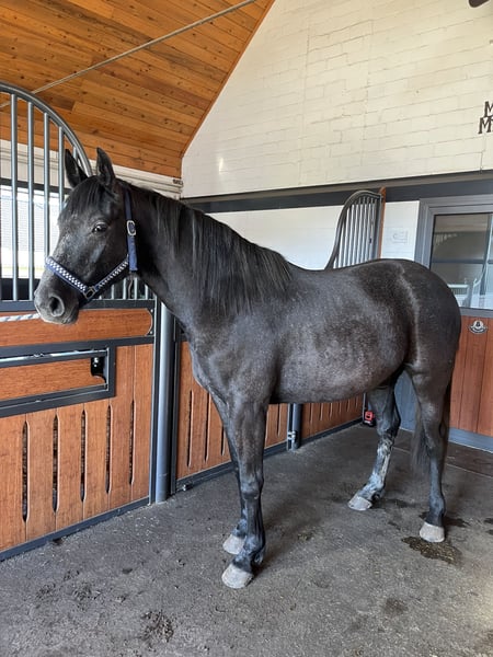 Dreijährige Hannoveranerstute sucht neues Zuhause! * Hannoveraner * geboren 2023 * abstammend von Diacontinus x Black Jack * aktuelles Stockmaß: 1,60m * geschätztes Endmaß: etwa 1,65m * wird Schimmel Diva zeigt sich neugierig und freundlich im täglichen Umgang. Fremden gegenüber ist sie zunächst etwas schüchtern. Hat man dieses Pferd jedoch einmal für sich gewonnen, wartet hier ein echtes Herzenspferd auf seinen Menschen. Im Freilauf bringt sie ein gesundes Maß an Temperament mit. Sie wird regelmäßig geputzt und kennt schon etwas Bodenarbeit und die Arbeit im Roundpen mit den Anfängen des Longierens, wobei sie sehr lernwillig mitmacht. Diva steht nachts in einer Box und tagsüber auf Paddock und Weide in einer gemischten Herde. Sie wurde bisher regelmäßig entwurmt, ist geimpft und wird dem Schmied vorgestellt. Videos vom Freispringen und Longieren sind vorhanden. Wir wünschen uns für Diva eine Person, die sich mit ihr beschäftigt und sie in den nächsten Jahren liebevoll und mit viel Geduld ausbilden möchte. Uns ist ein Lebensplatz mit Bezugsperson besonders wichtig. Sie wird nicht an Händler verkauft. Bei ernsthaftem Interesse freuen wir uns über eine Nachricht mit ein paar Infos zu dir und ihrem potenziellen neuen Zuhause! Es kann gerne ein persönliches Kennenlernen vereinbart werden. Platz vor Preis!
