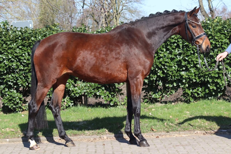 Charming 3-year-old mare by Galaxy x Florencio, featuring an outstanding movement pattern. She is very well-behaved in handling but has not yet been ridden under saddle. Price excluding VAT. Inquiries only by phone; emails will not be answered.