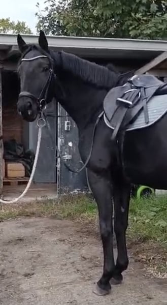 Hannoveraner Rappstute – 3 Jahre, 165 cm, wächst noch Sie ist möchte was tun und lernt schnell. Zum Verkauf steht eine vielversprechende, 3-jährige Hannoveraner Rappstute mit aktuell ca. 165cm Stockmaß (im Wachstum). Sie ist schonend angeritten, sicher in allen Gangarten beide Seiten. Sie ist unerschrocken und ihres Alters entsprechend Mega gelassen. Für den Anfänger und auch Fortgeschrittenen. Sie wird vom Boden aus gearbeitet, kennt die Longe und zeigt sich dabei aufmerksam, lernwillig und gelassen. Im täglichen Umgang ist sie sehr brav, menschenbezogen und unkompliziert. • Altersgemäß schonend gearbeitet • Geländeerfahrung am Strick, souverän und entspannt • mittlerer Rang-Ranghoch, dabei herdenverträglich und sozial Sehr gute Grundlage für den weiteren Ausbildungsweg Eine ideale Stute für alle, die sich eine zuverlässige, charakterstarke Partnerin mit solider Basis wünschen.